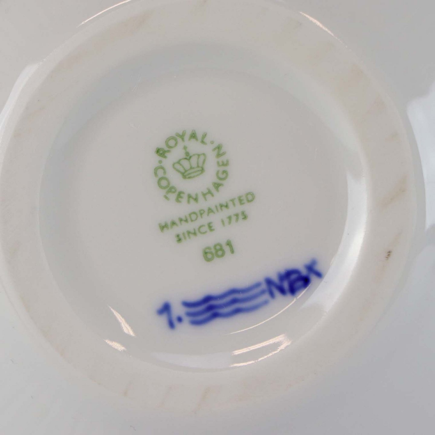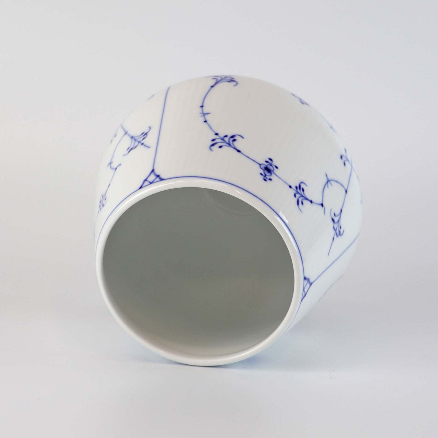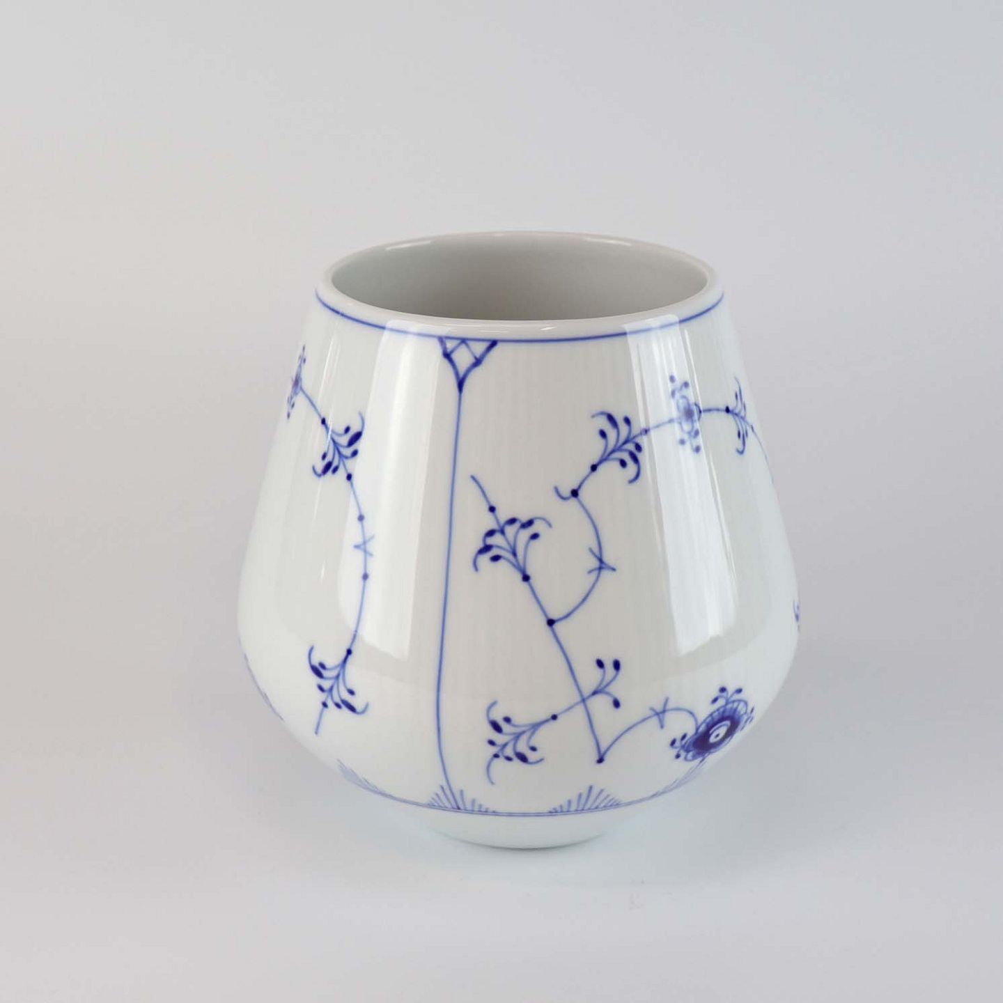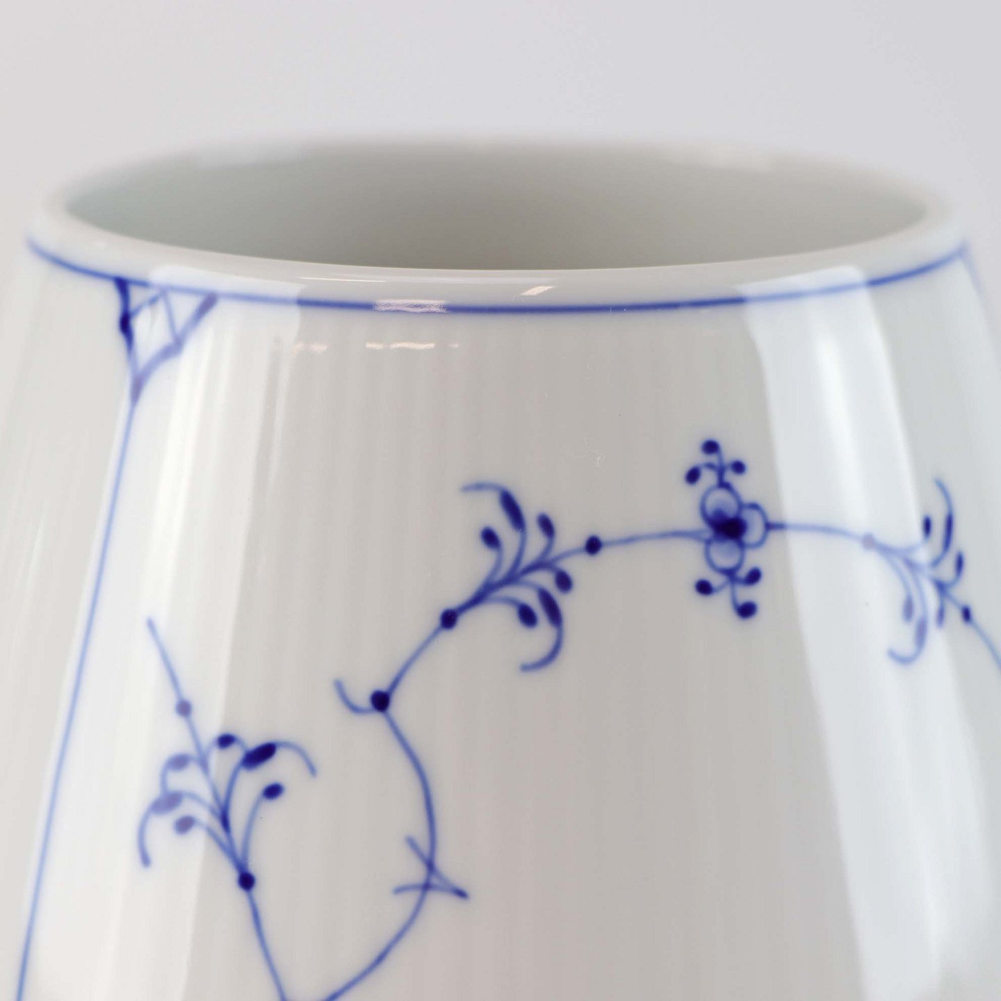 Riflet hvidt porcelæn med dekoration af blå ranker og blomster