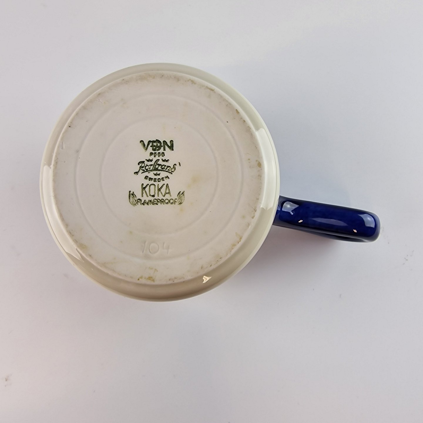 Blå Koka er af hvidt glaseret porcelæn med et bånd af mørk blå