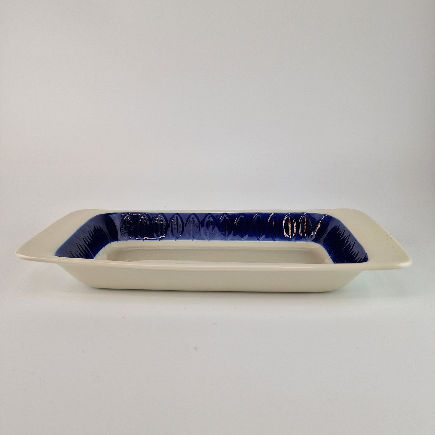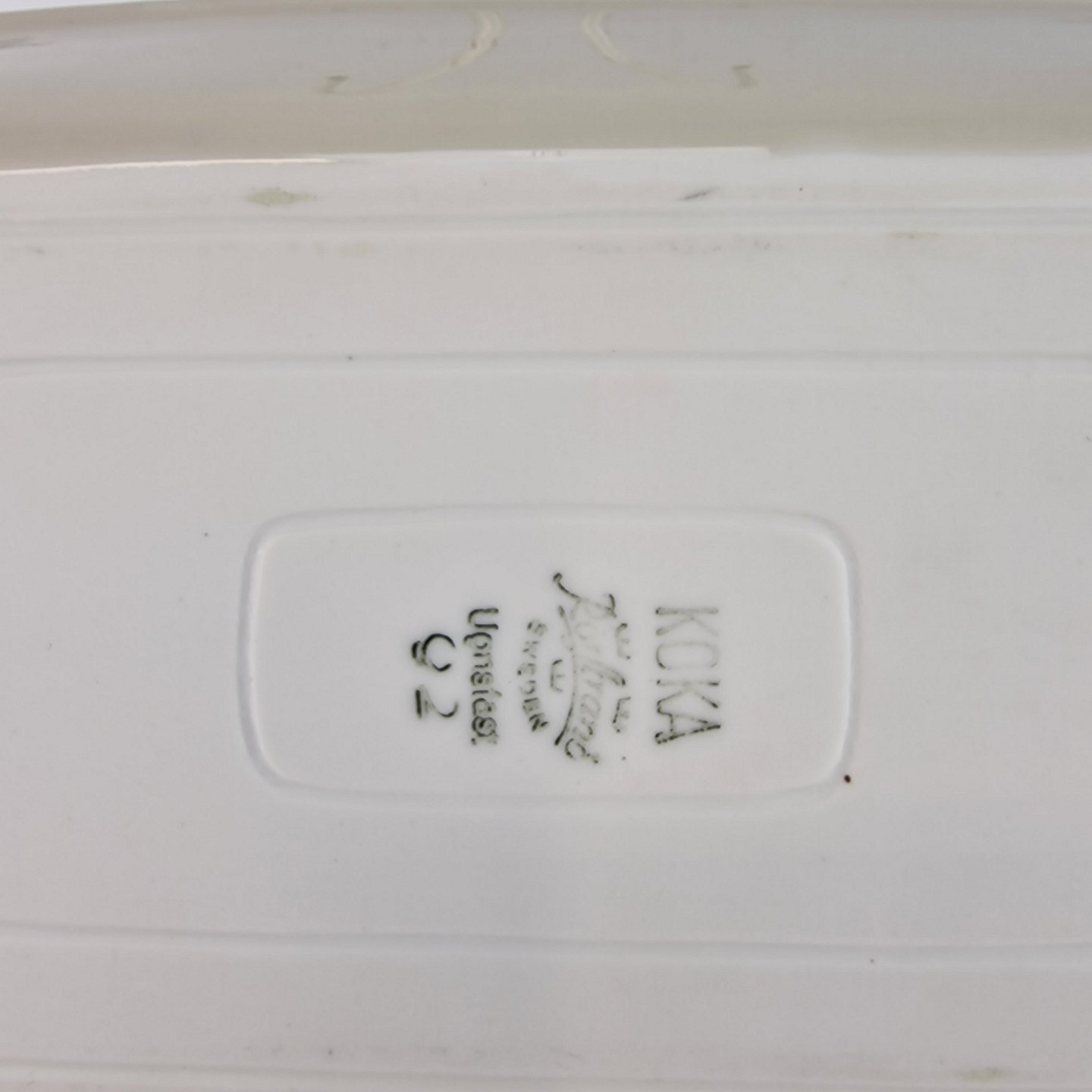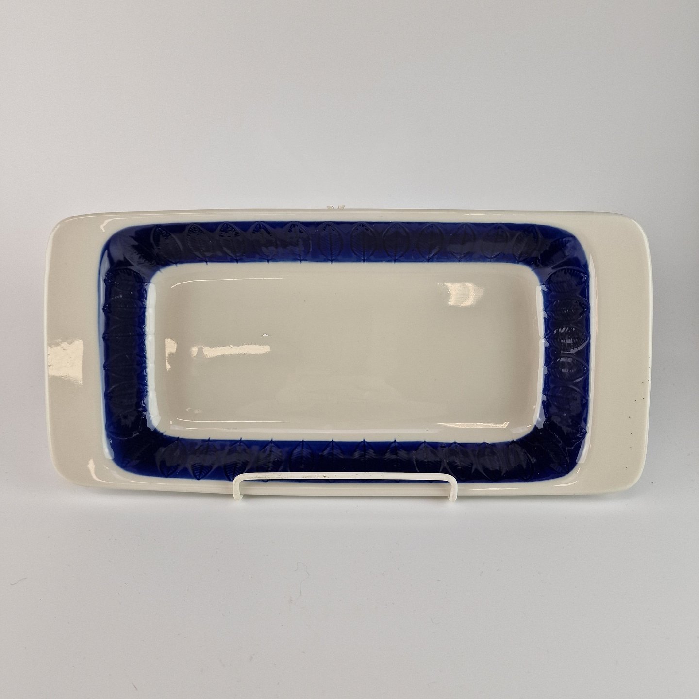 Blå Koka er af hvidt glaseret porcelæn med et bånd af mørk blå