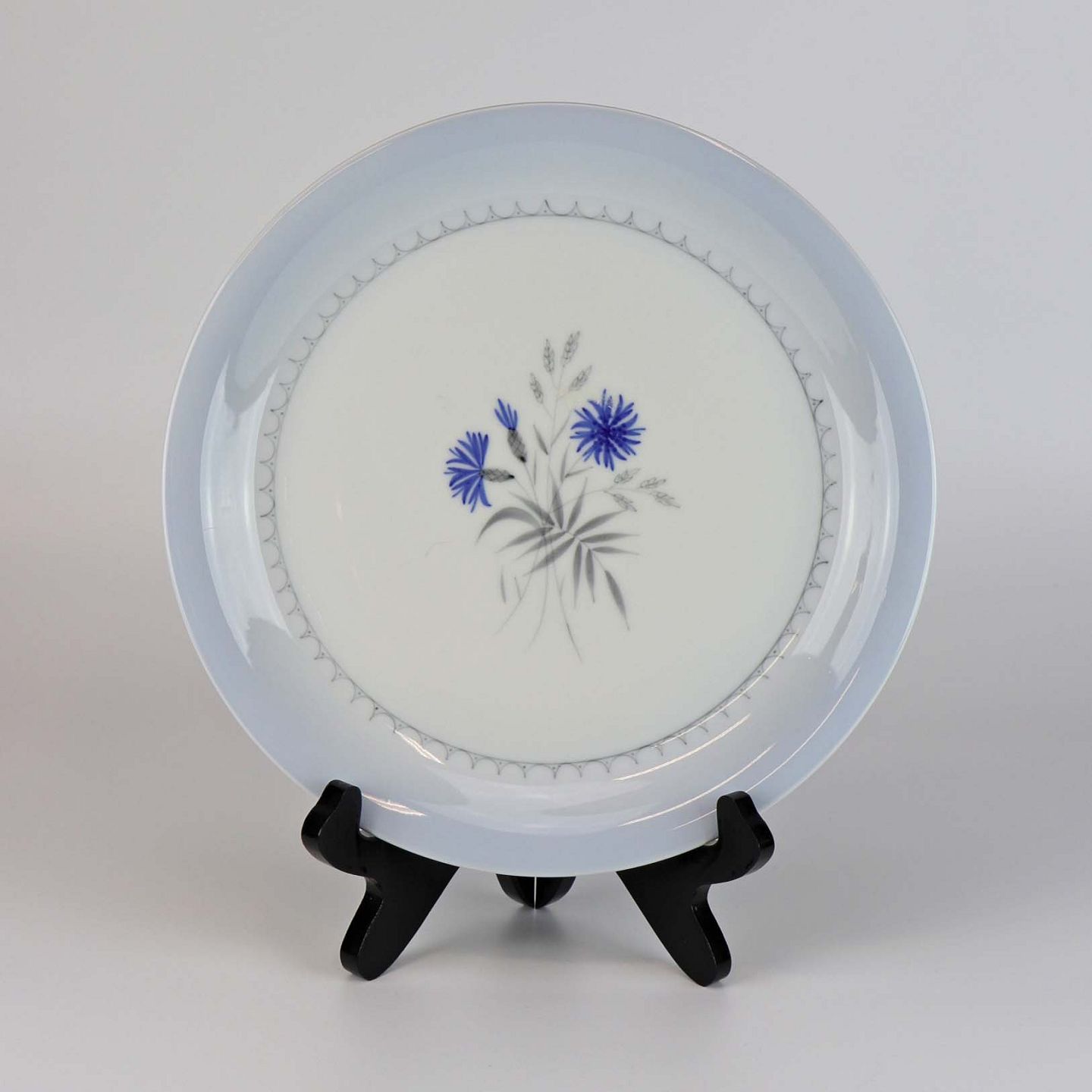 Demeter er af hvidt porcelæn med graduering af blå i kanten og med motiv af kornblomst