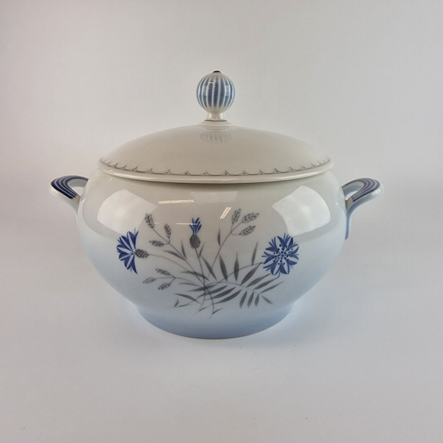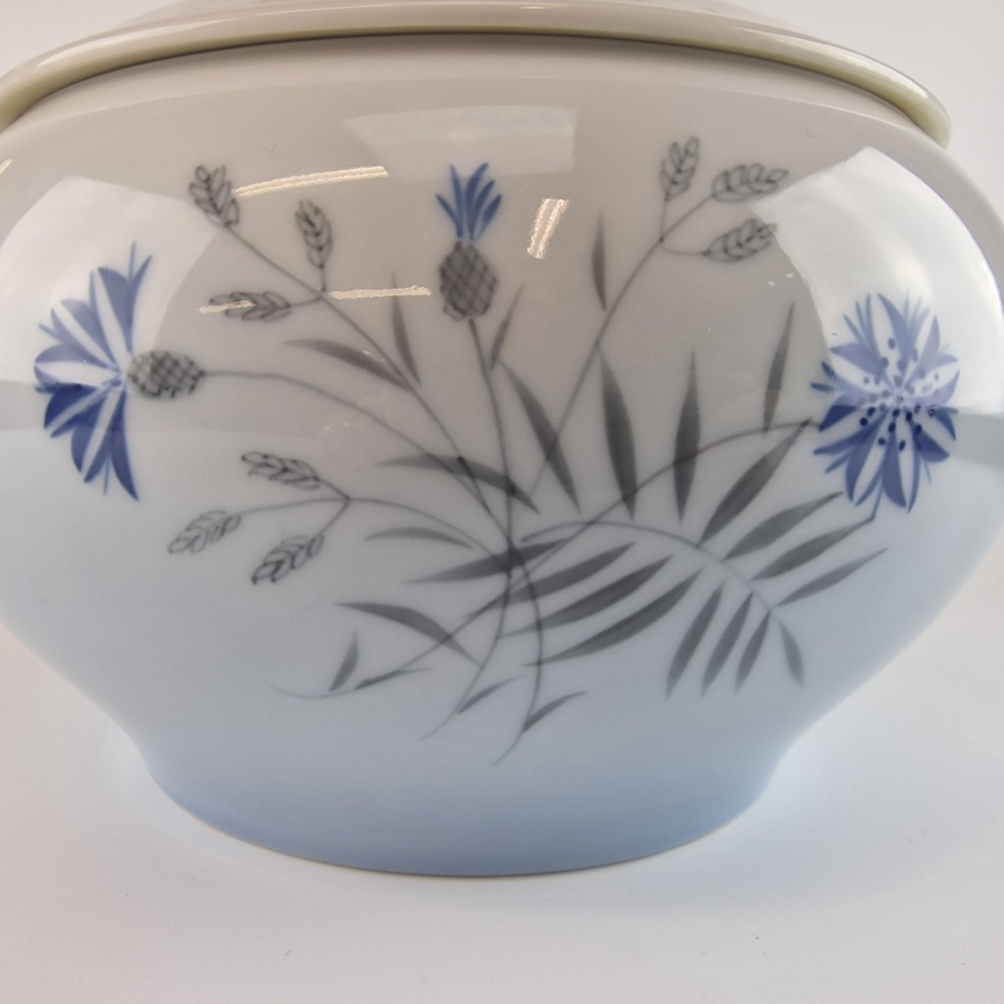 Demeter er af hvidt porcelæn med graduering af blå i kanten og med motiv af kornblomst