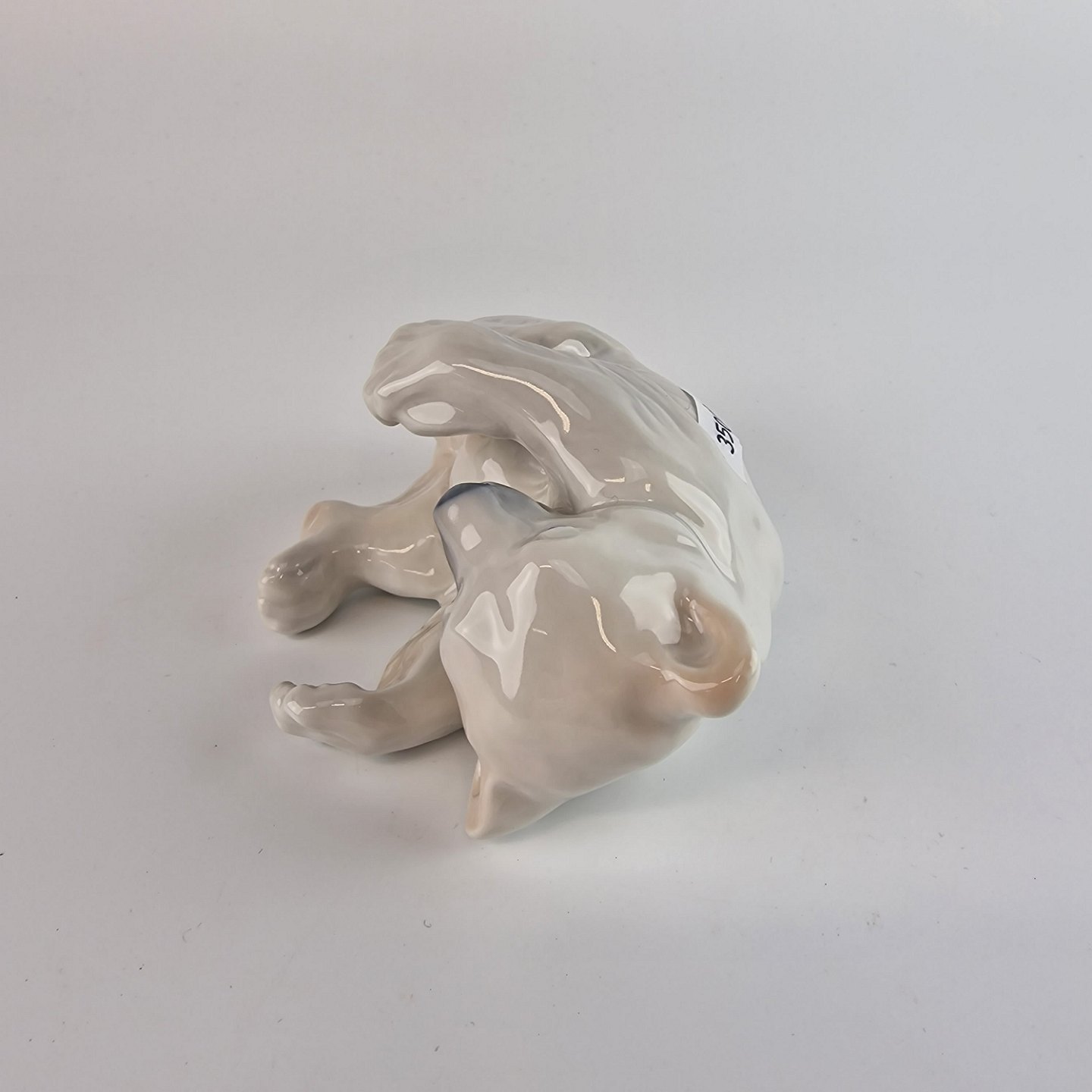 Figur som forestiller en isbjørn der ligger på siden og leger med sine poter, arkivfoto