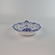 Musselmalet halvblonde er riflet hvidt porcelæn med dekoration af blå ranker og en kant med blonder