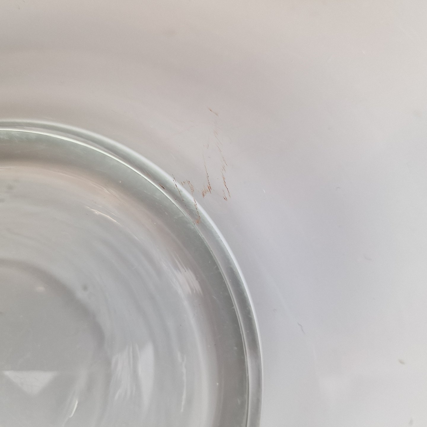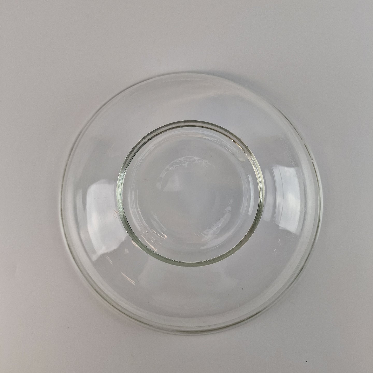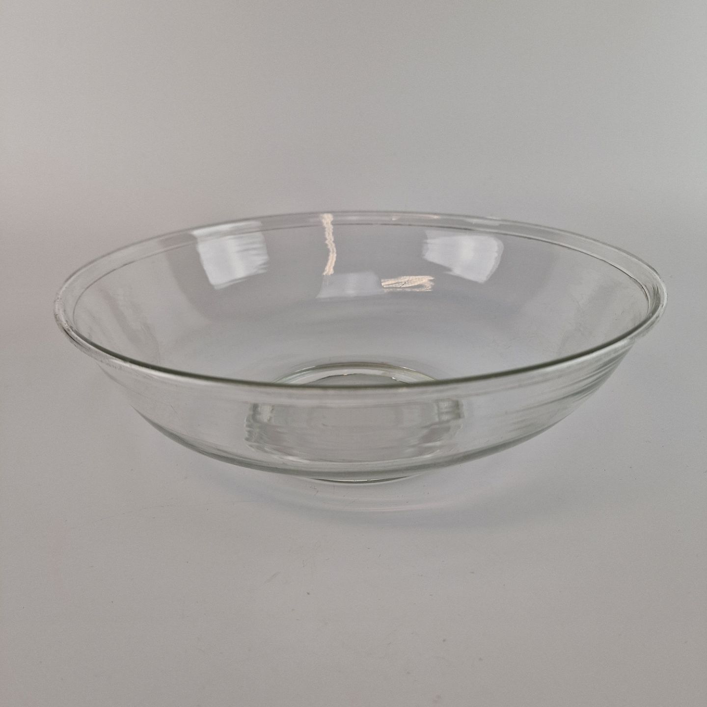Glasskålen er kugleslebet i bund og har lidt brugsspor i glasset