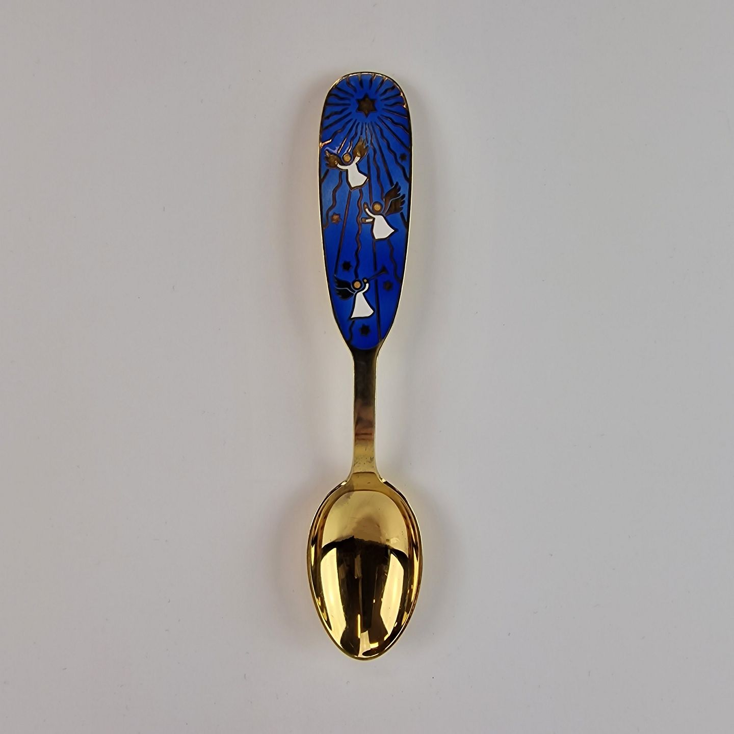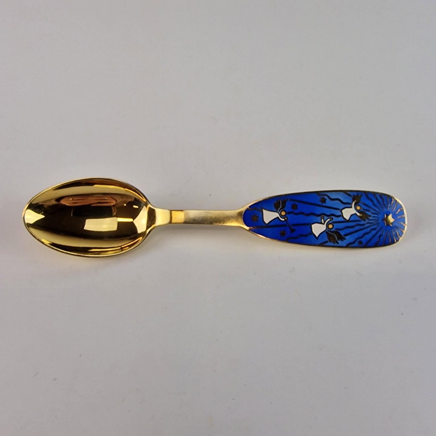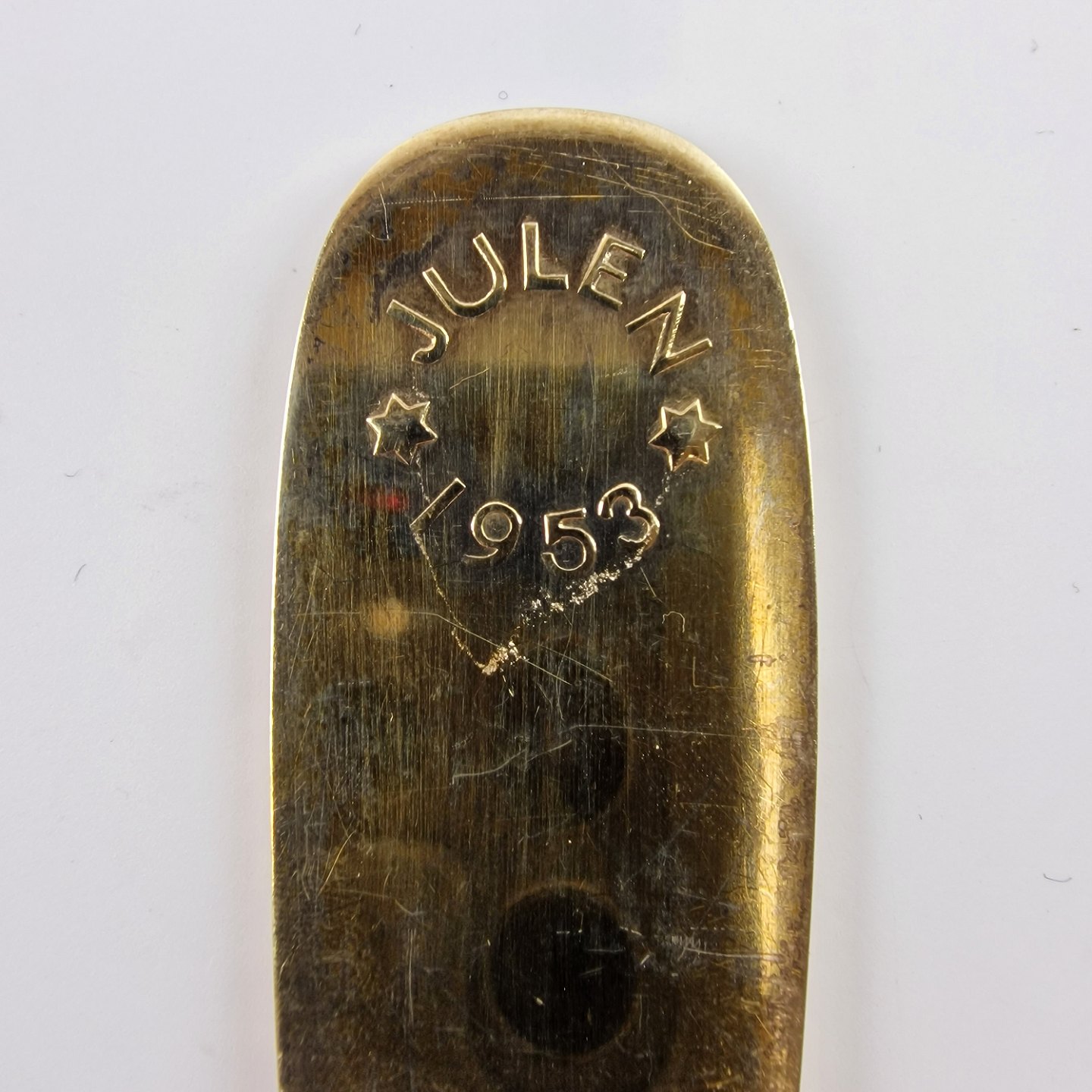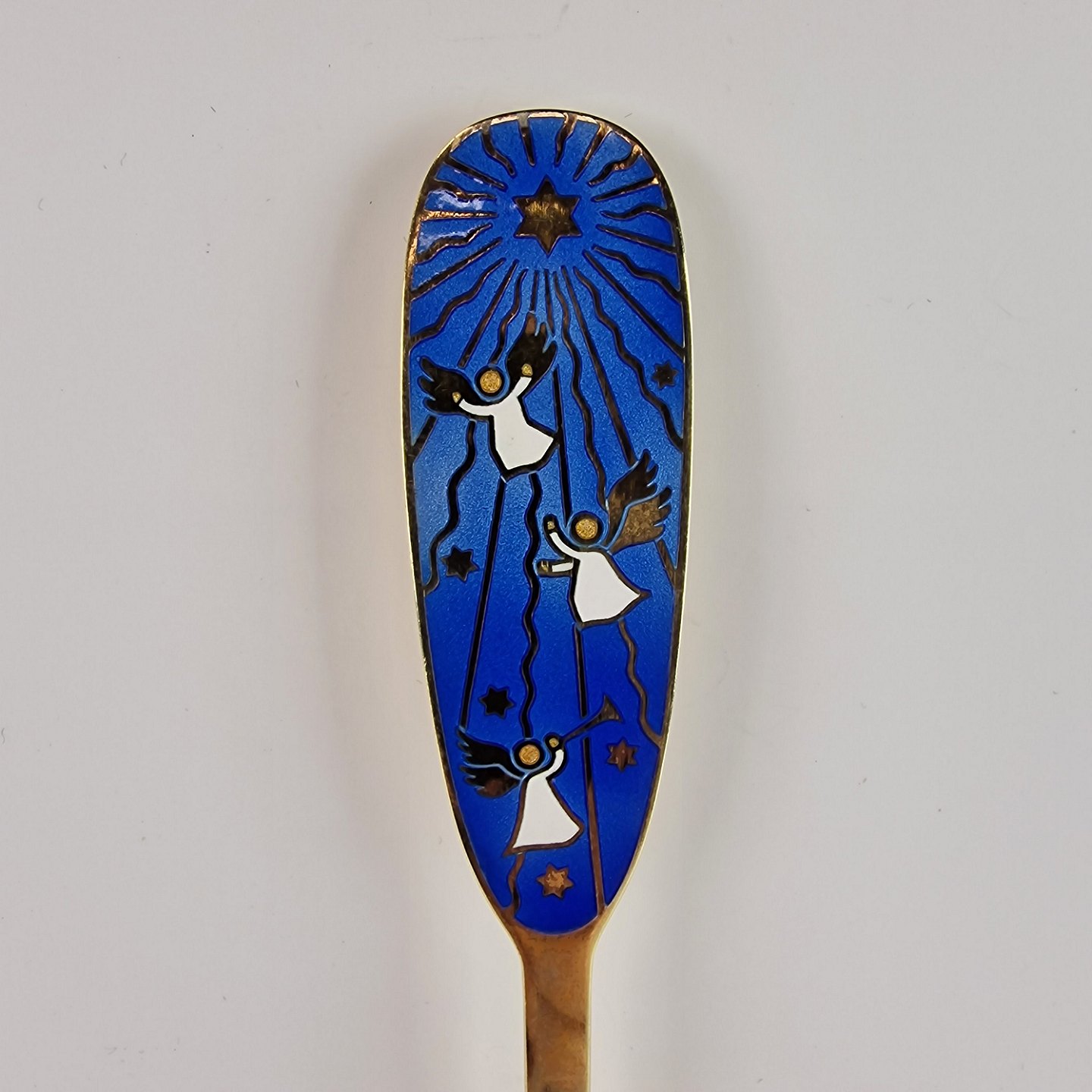 Julen 1953. Motiv tre engle og ledestjerne, på blå baggrund.