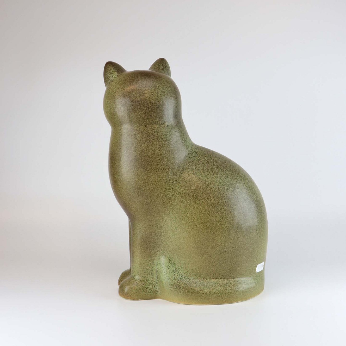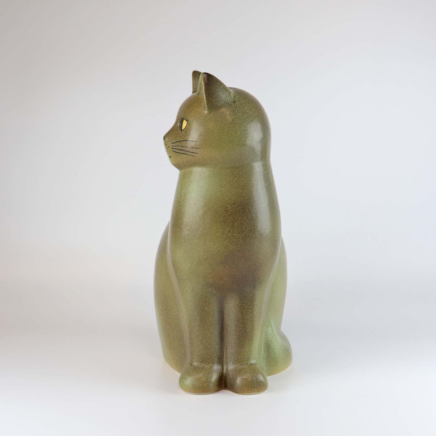 Keramik kat af grønmeleret stentøj fra serien Murre. Størrelsen maxi