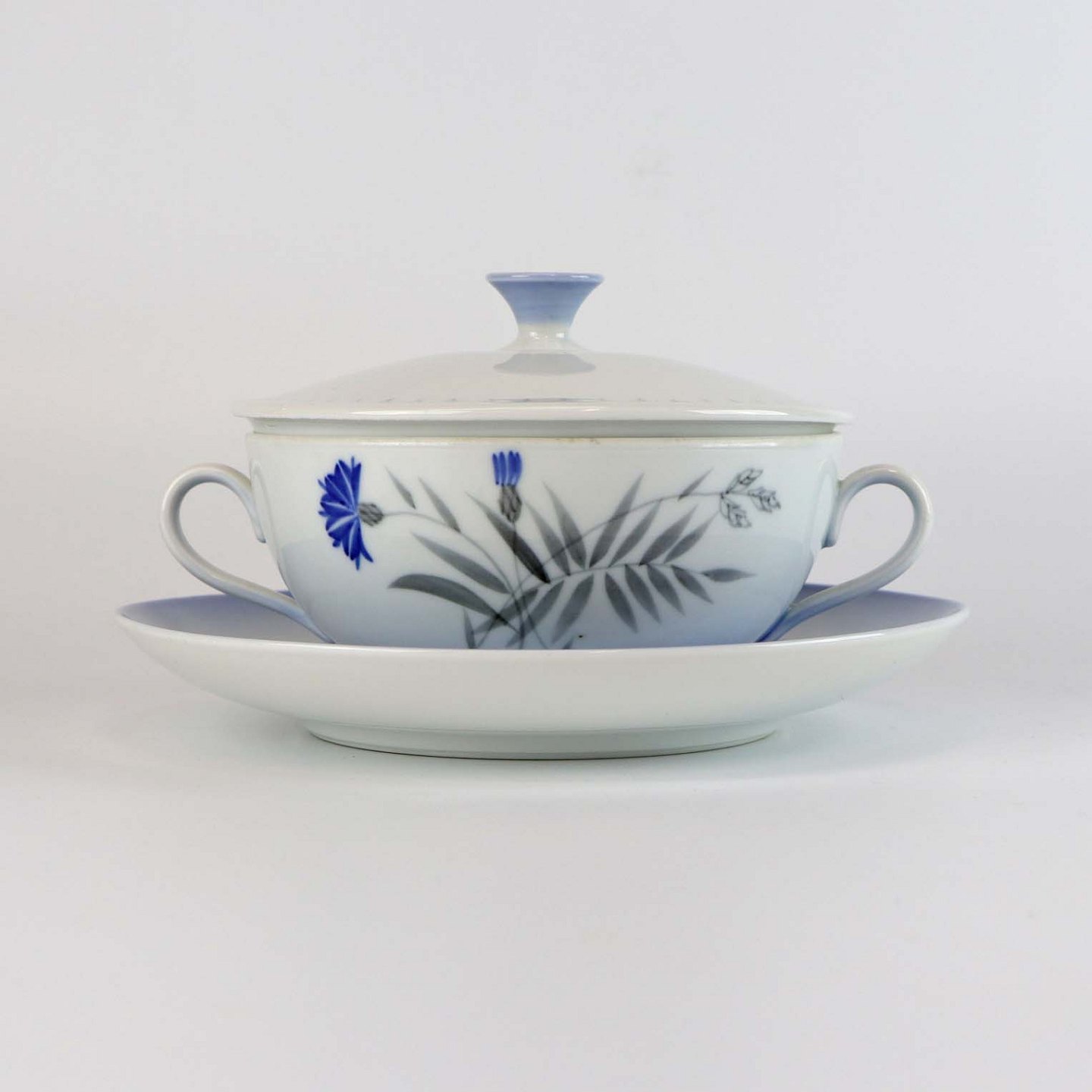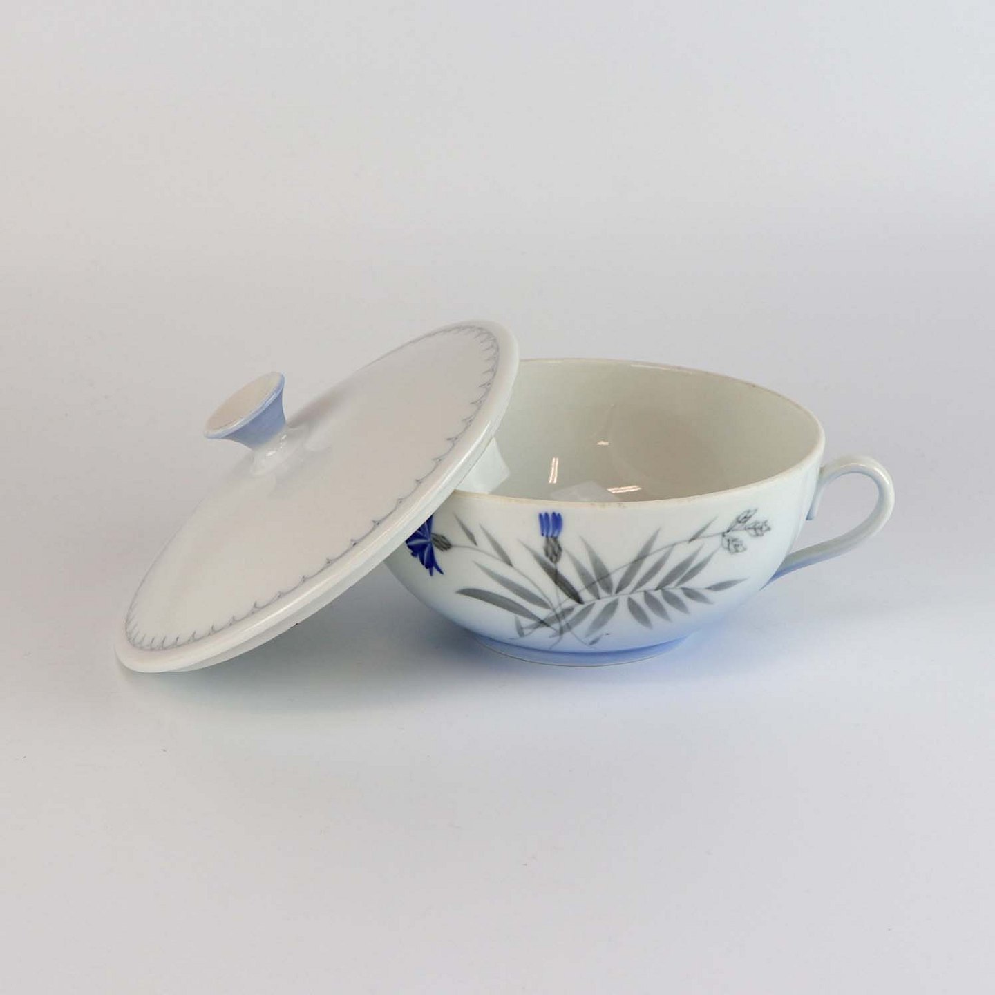 Bouillonkop med låg og underskål fra stellet Demeter Blå. No 12 B