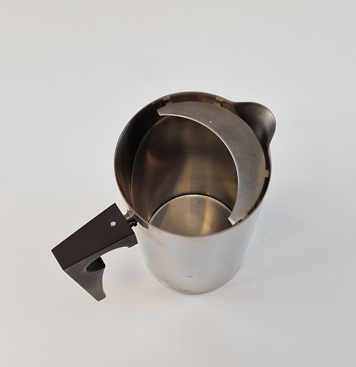 Stål kande med hank i plast. Indbygget stop til isterninger. Fra serien Cylinda-line. No 63/1
