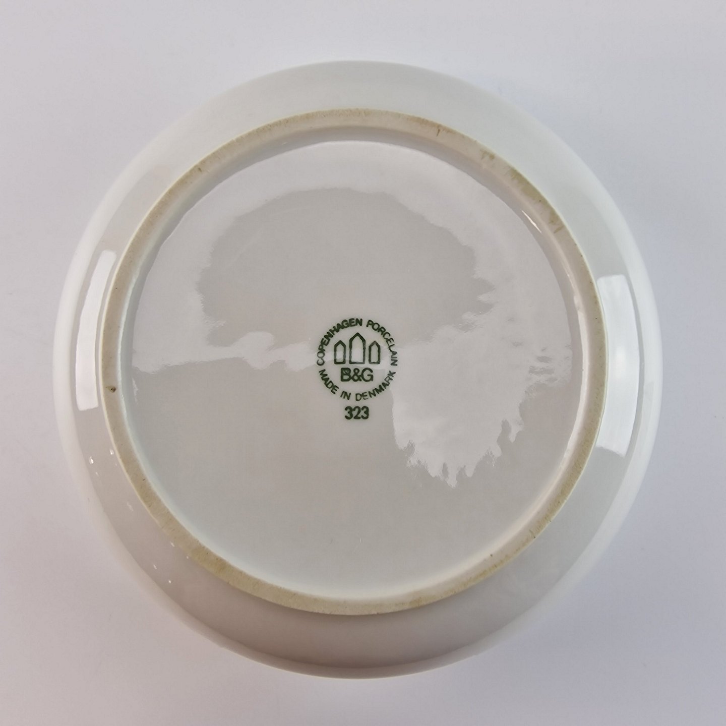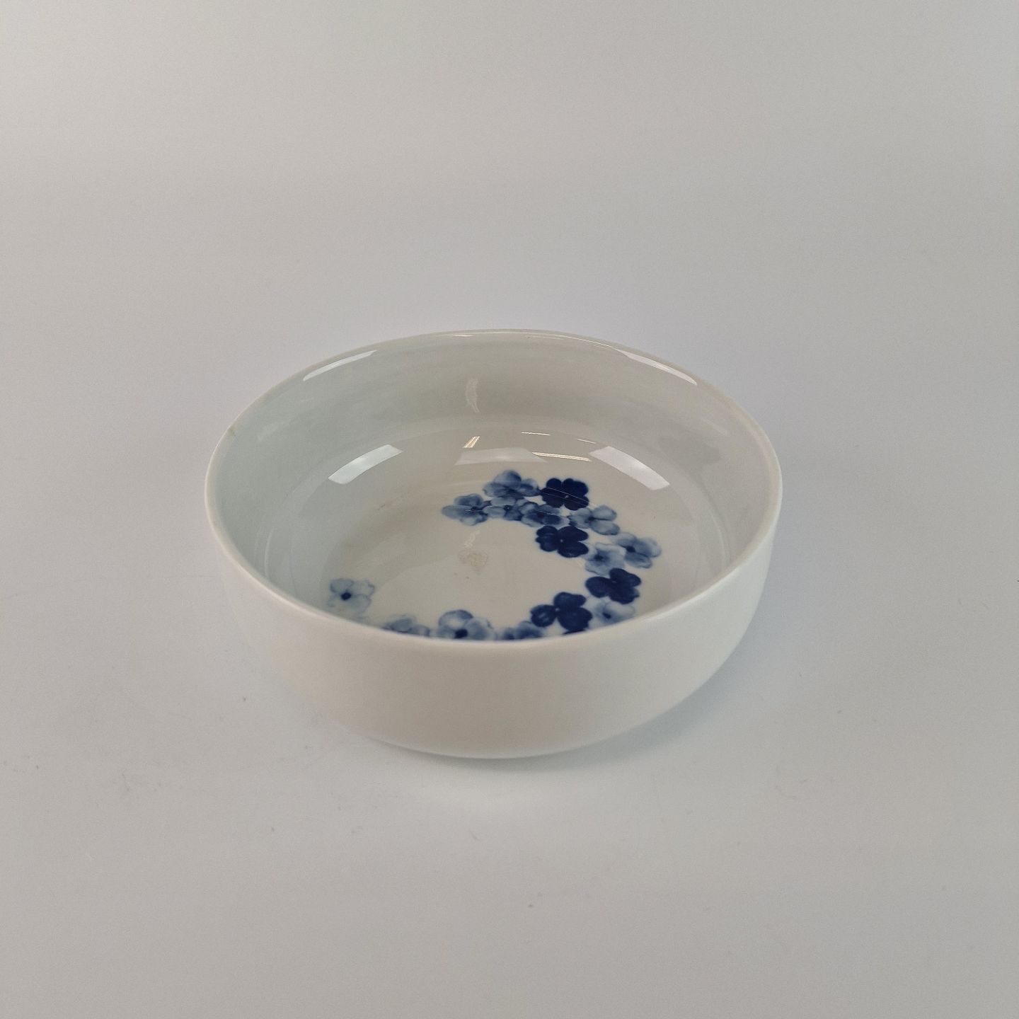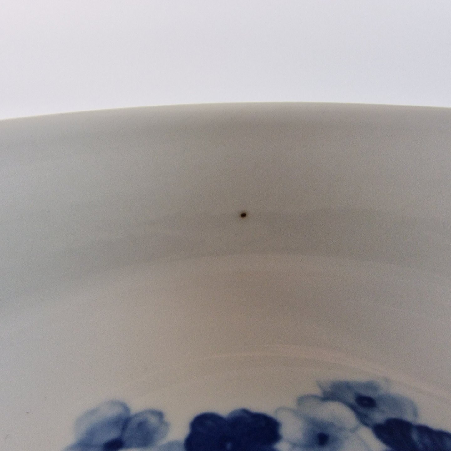 Troja er af kraftigt hvidt porcelæn med mønster af blå blomster