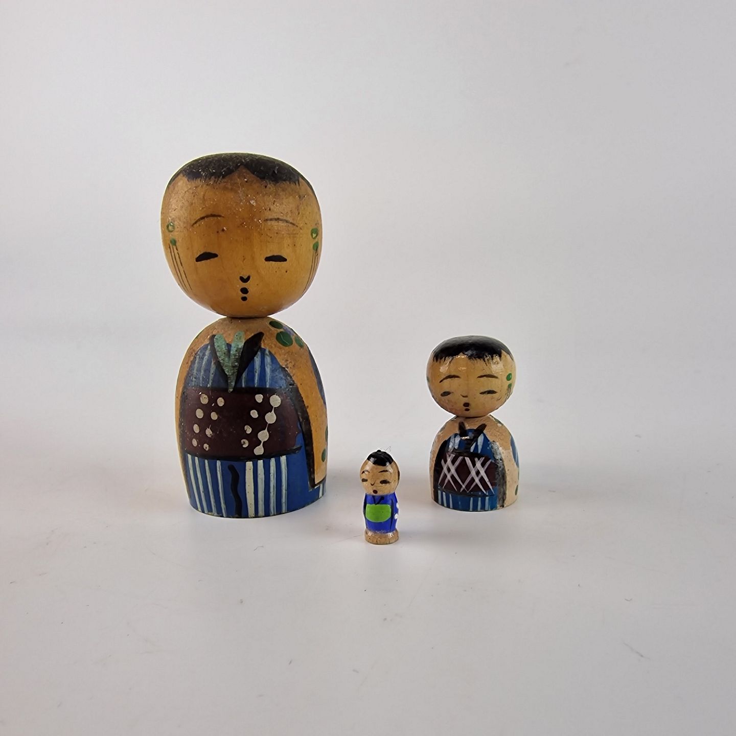 Japanske Kokeshi dukker. 3 styk sælges samlet