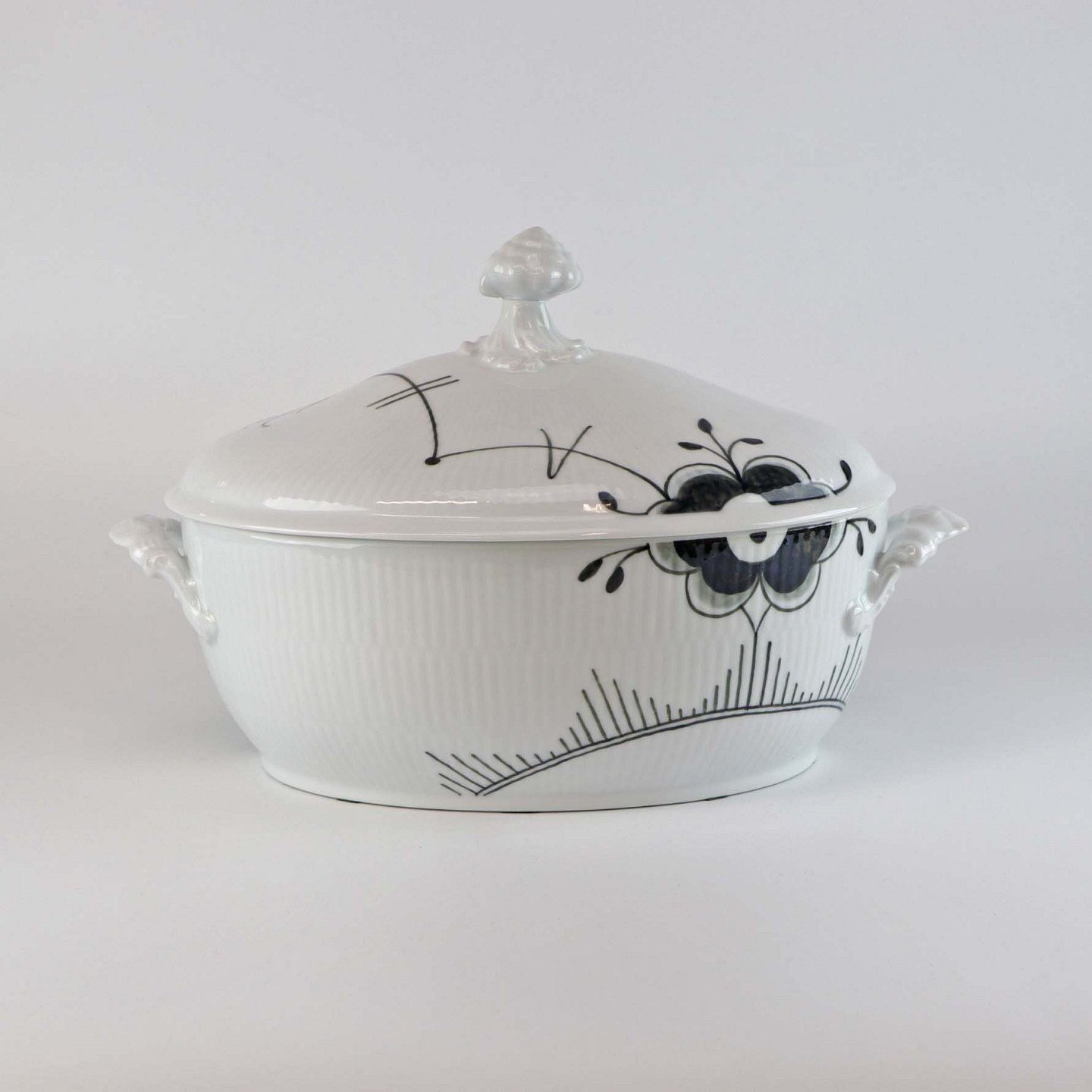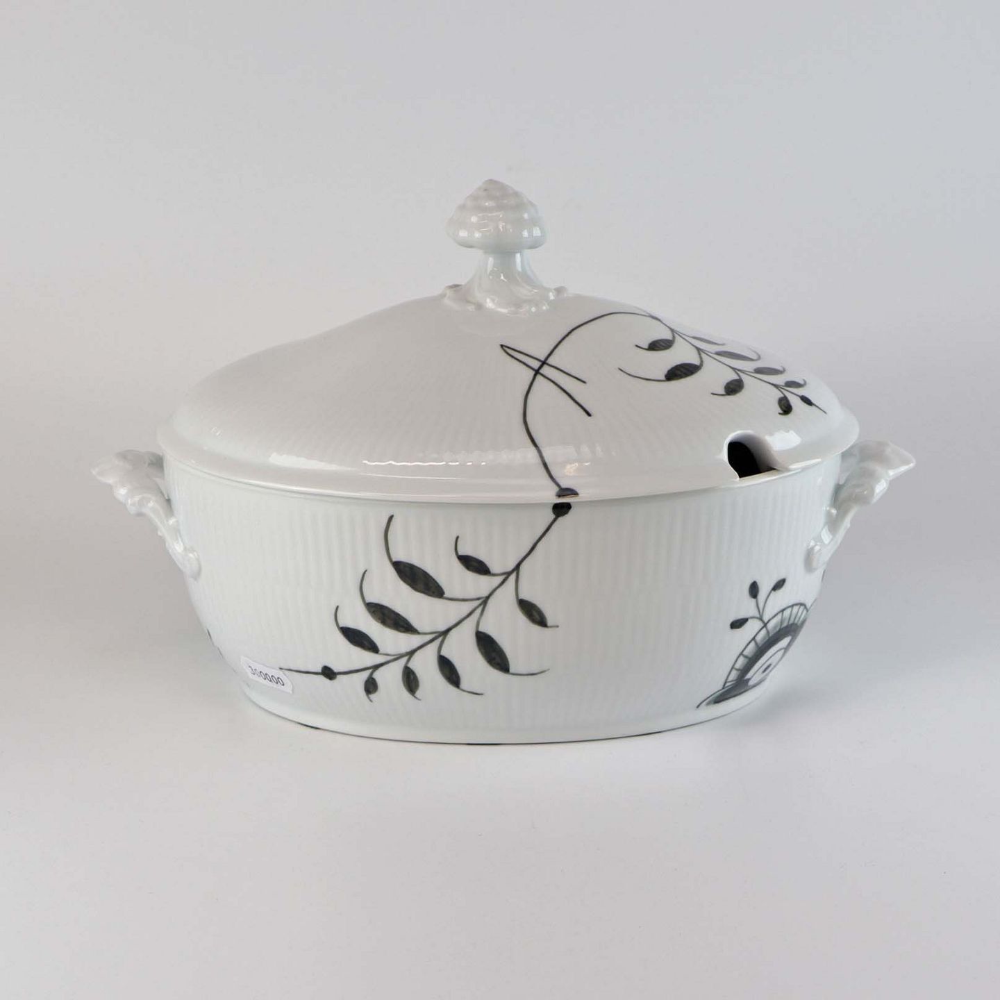 Sort Mega Riflet er af porcelæn og dekoreret med store sorte blomsterranker og mønstre