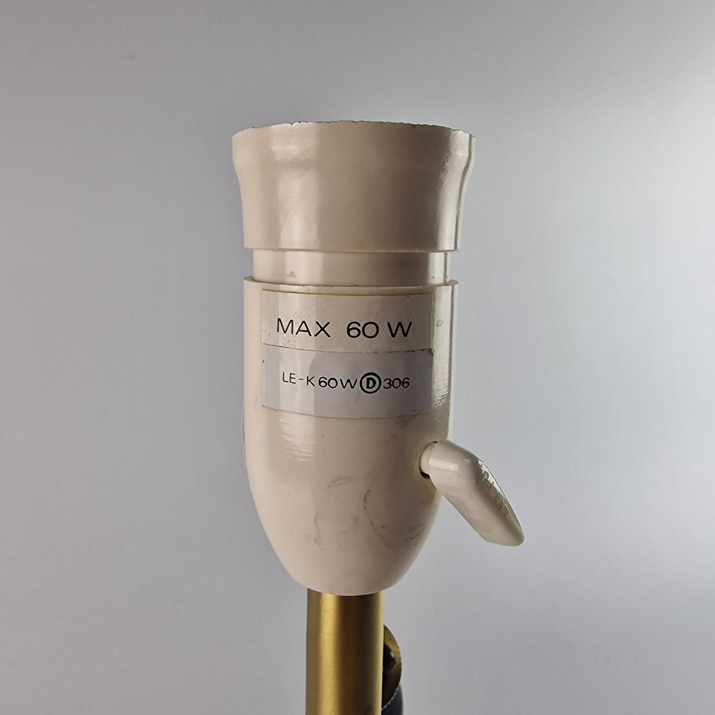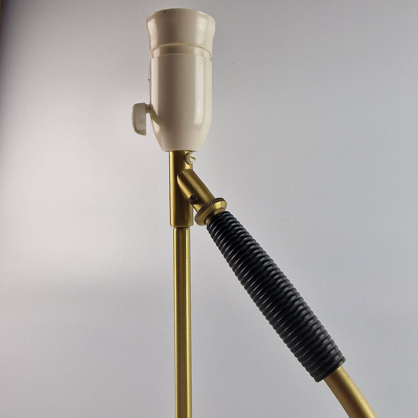 Lampe af messing og porcelæn. Pendulet kan drejes så lampen kan anvendes som væglampe.