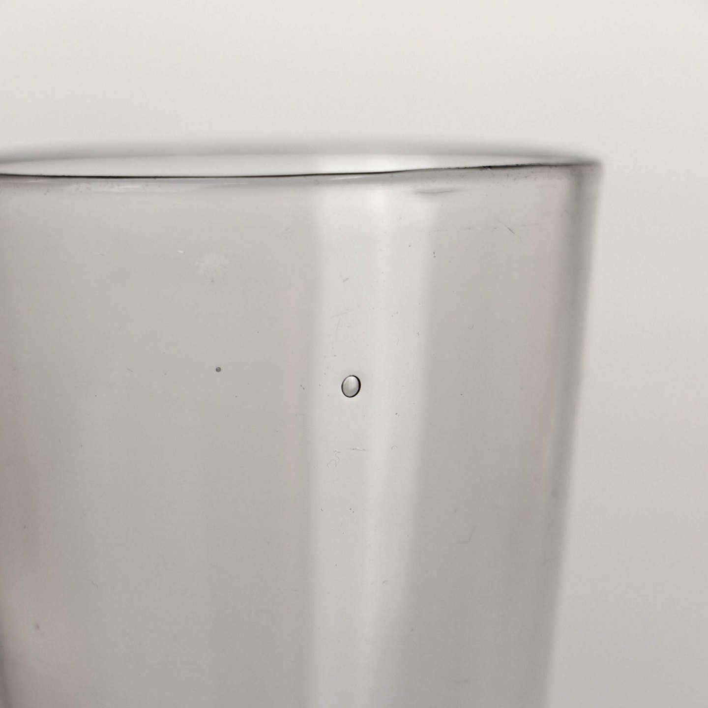 Fremstår med enkelte luftbobler i glasset og let skrående