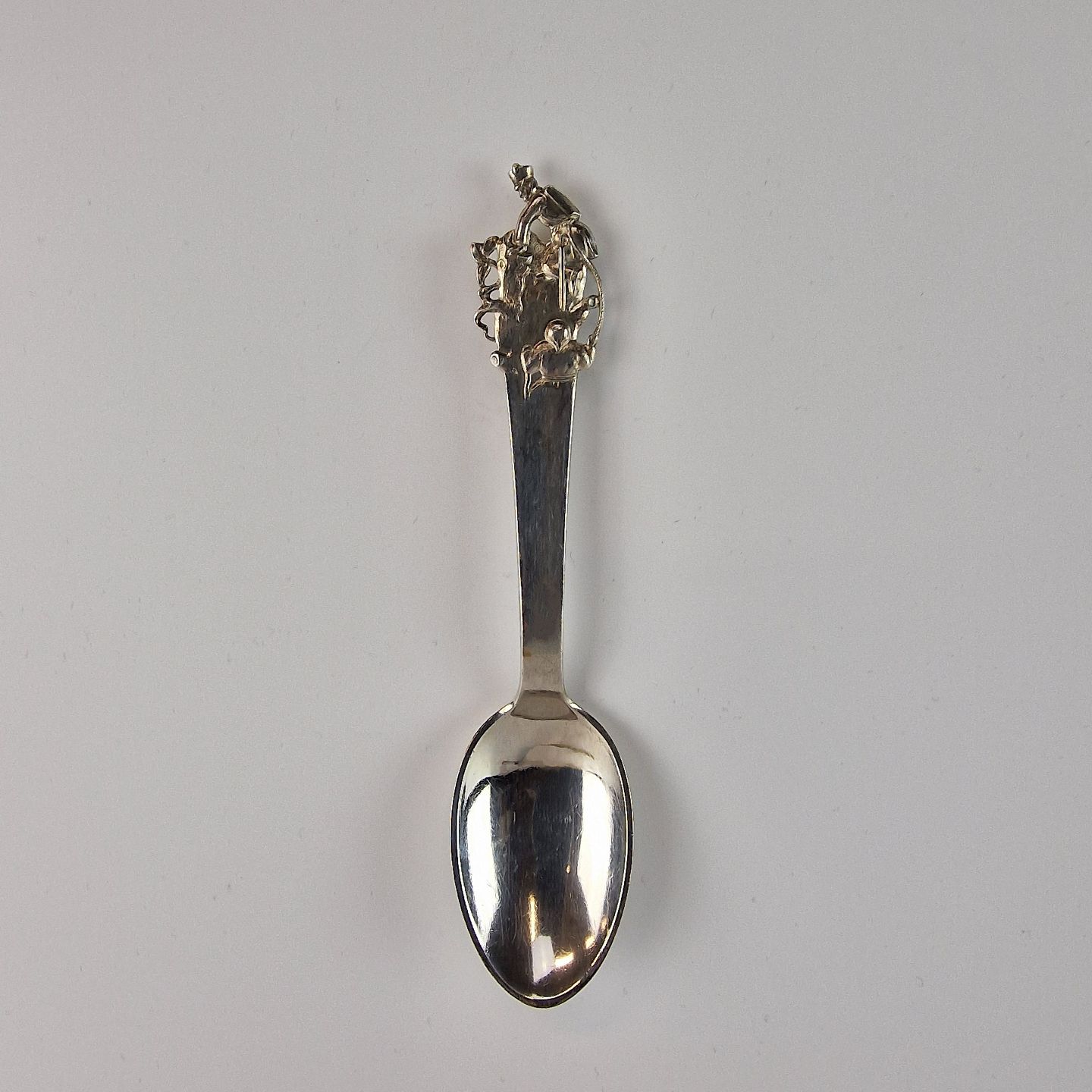 H.C. Andersen barneske i sølv. Med motiv fra eventyret Fyrtøjet. År 1950