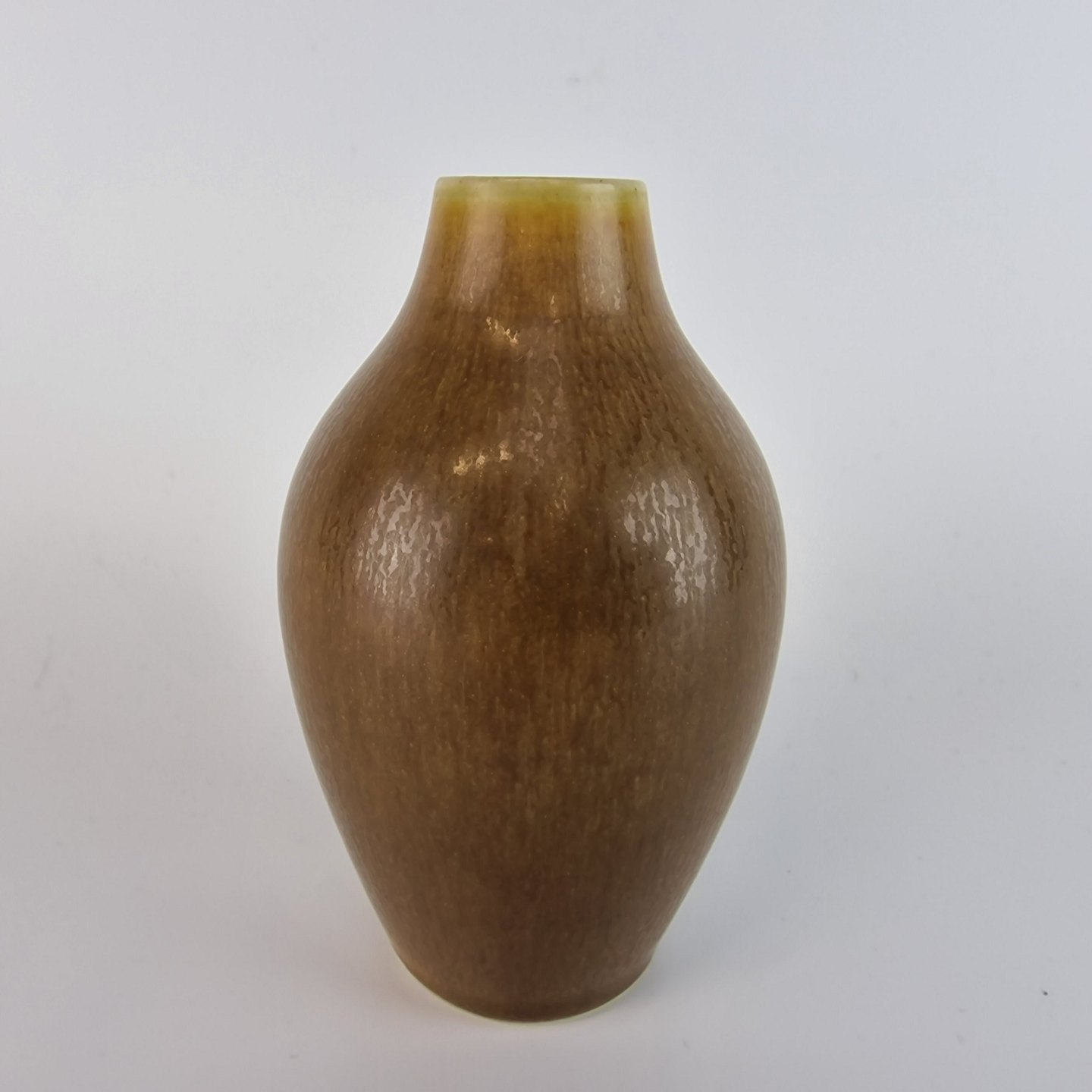 Keramik vase med brune og gyldne farver. No 1116