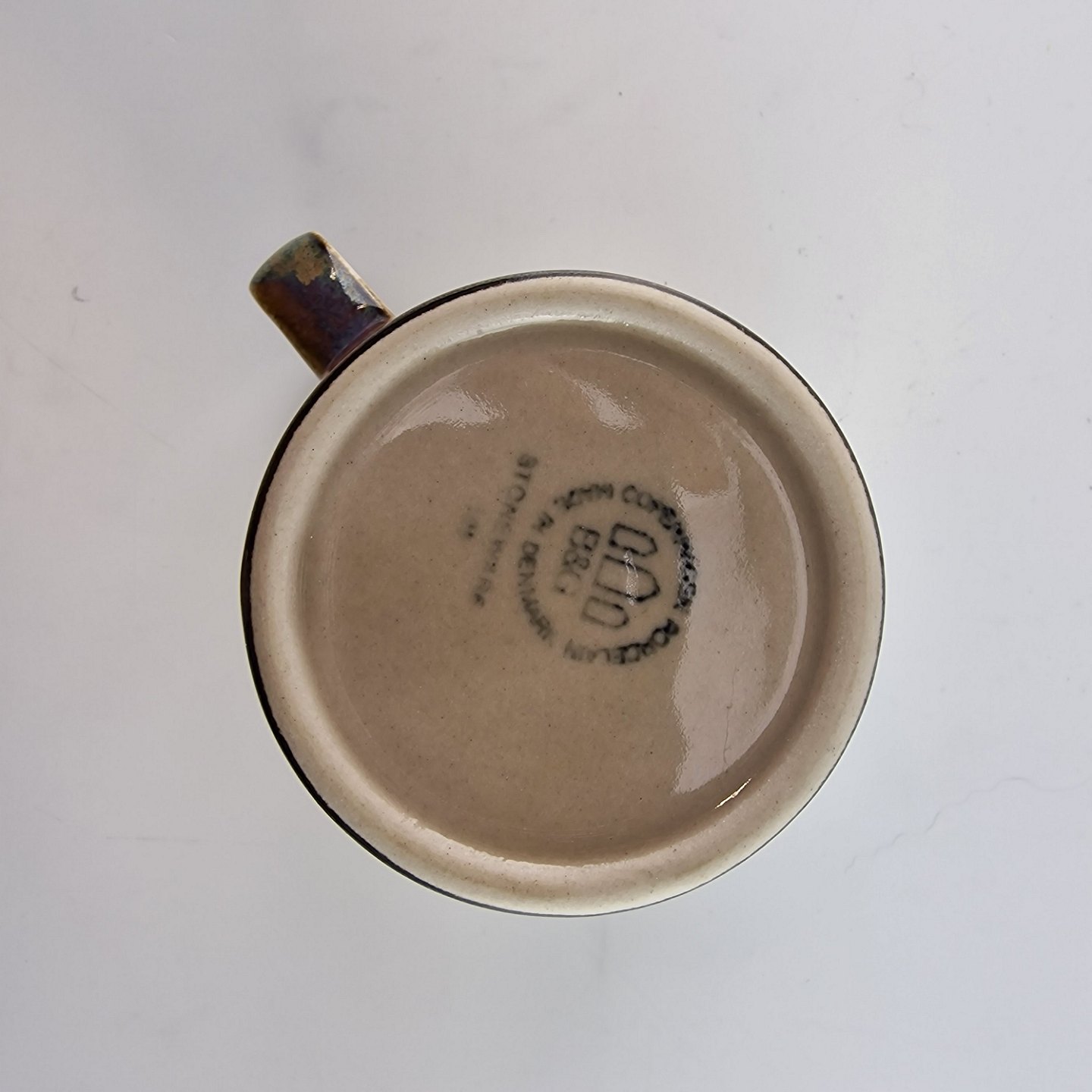 Stellet Peru er af stentøj, glaseret med lys grå farve og dekoreret med bånd af grøn/brunlige farve