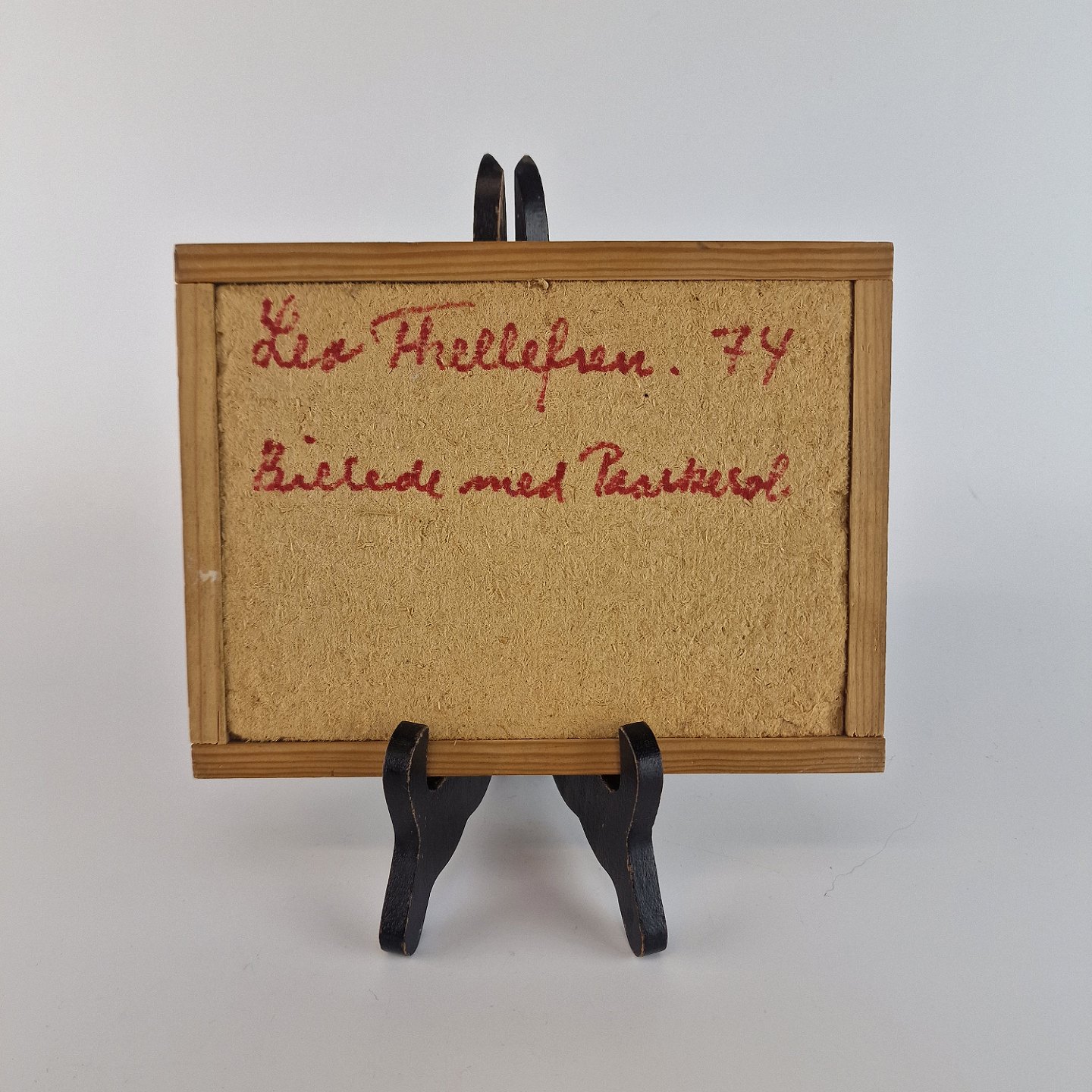 Oliemaleri på plade med abstrakt landskabsmaleri med titlen paaskesol fra år 1974