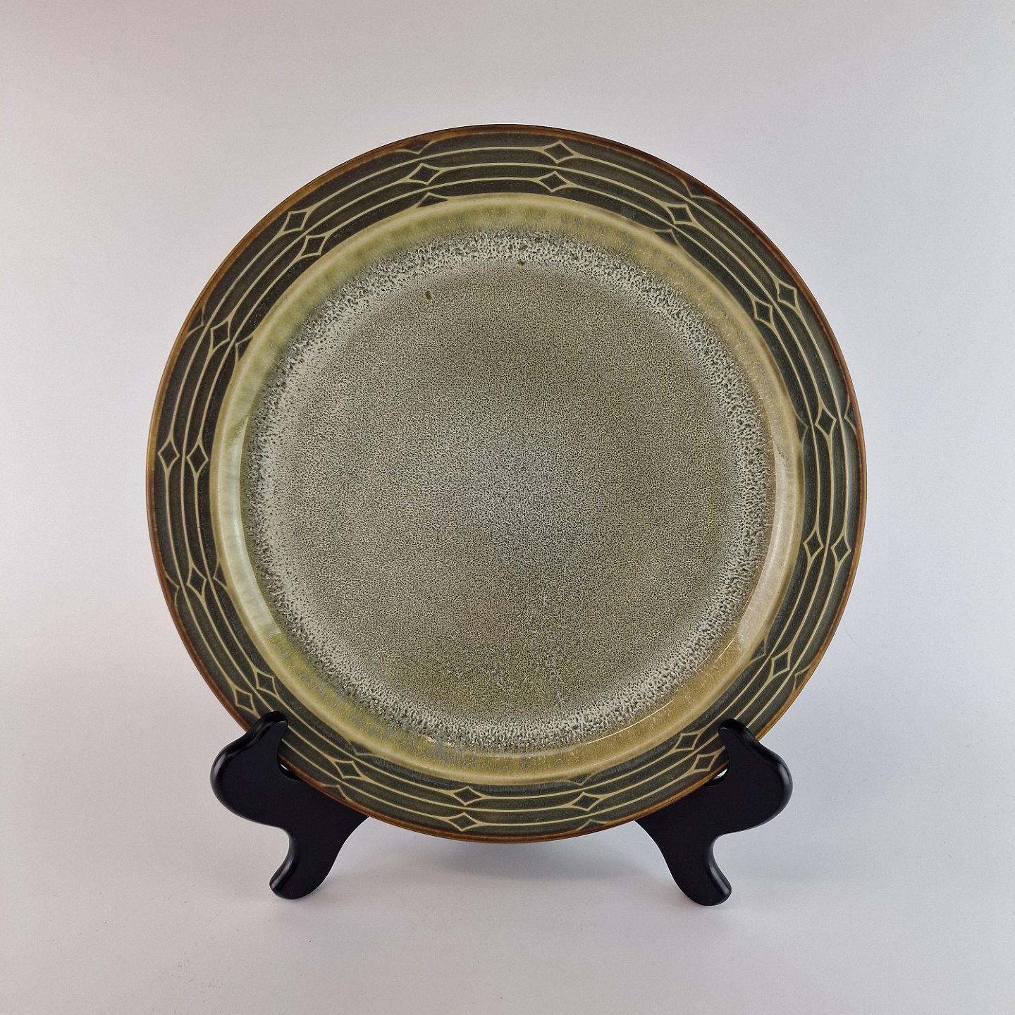 Stellet Rune er glaseret i grønne og råhvide farver med en brun kant