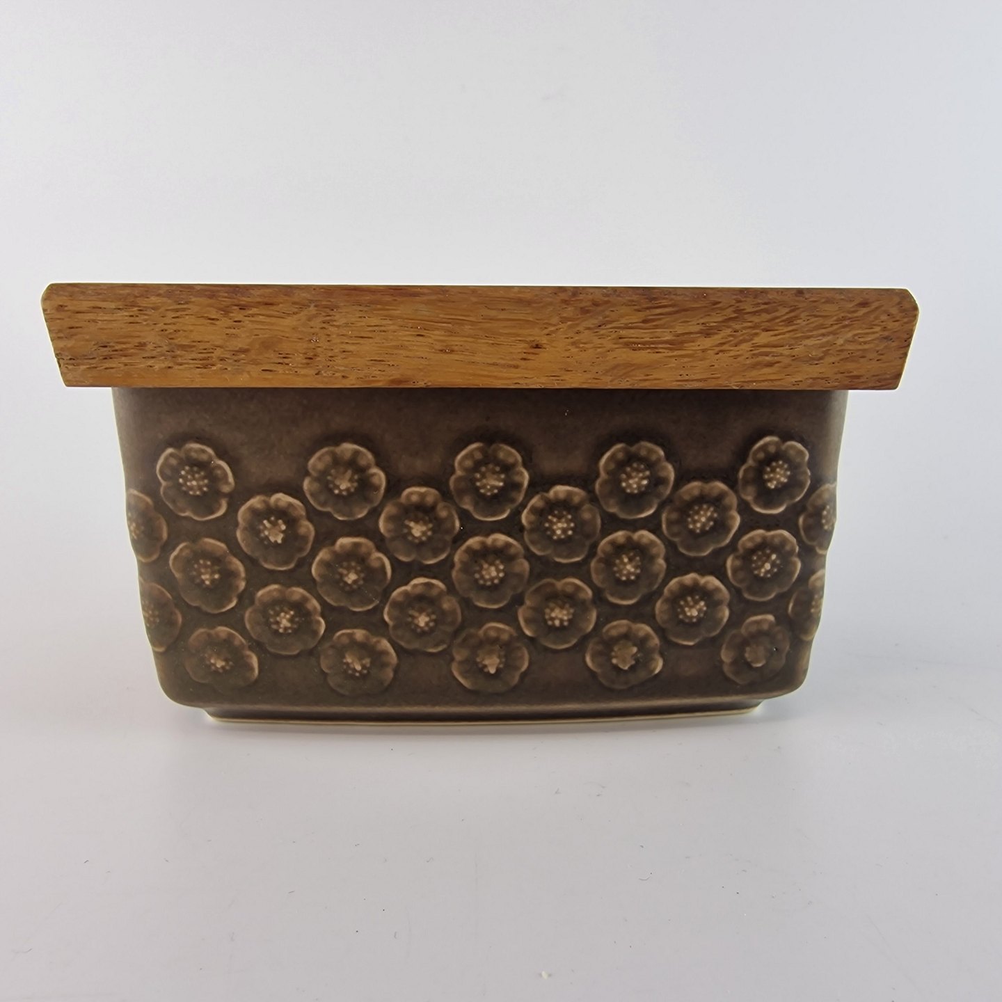 Smørskål i stentøj med trælåg fra stellet Umbra
