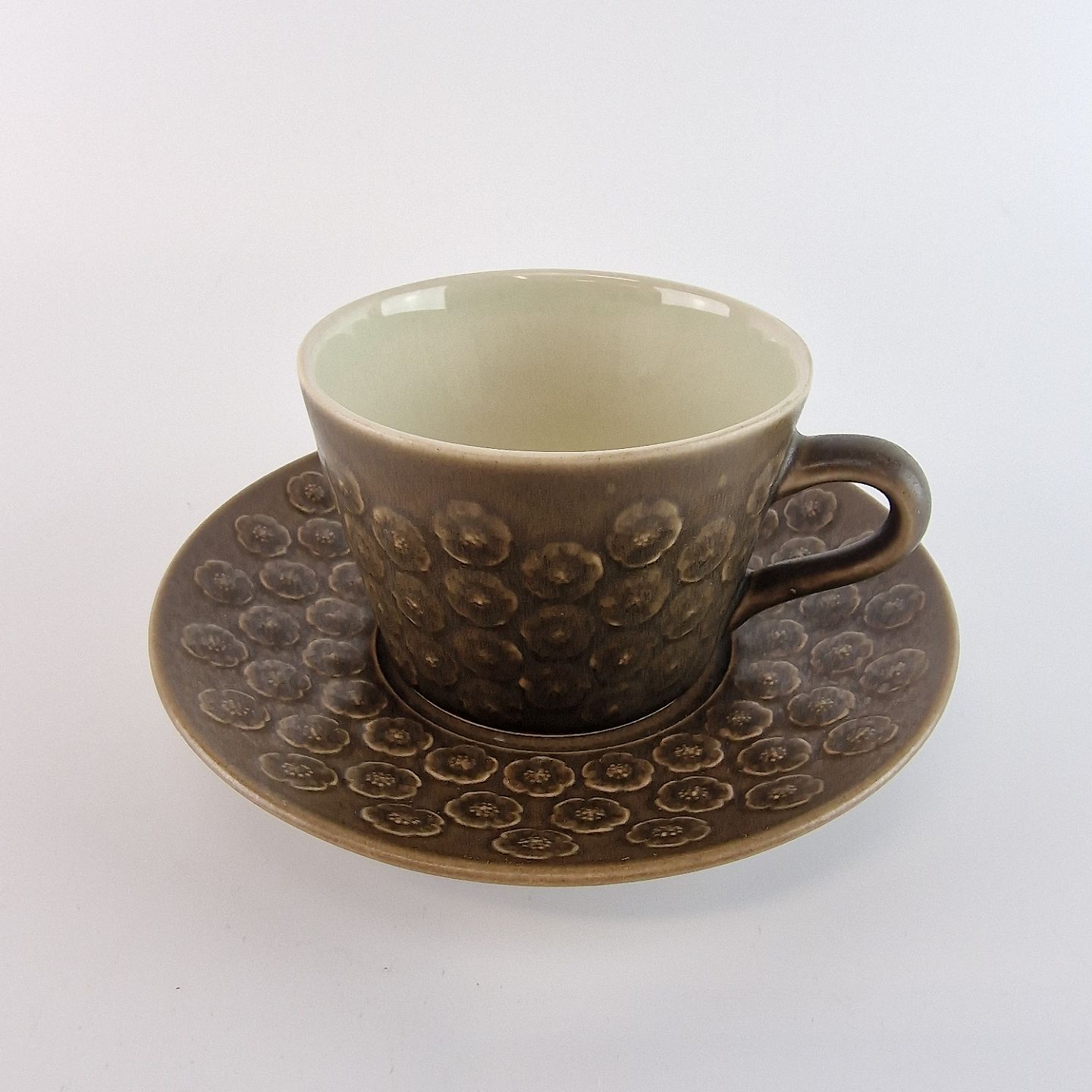 Stel i brun stentøj med blomster motiver