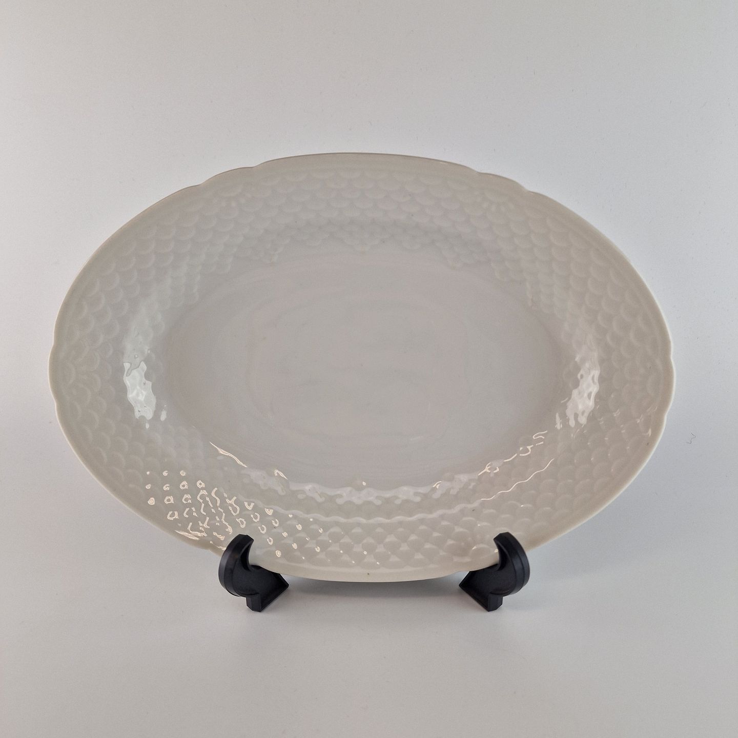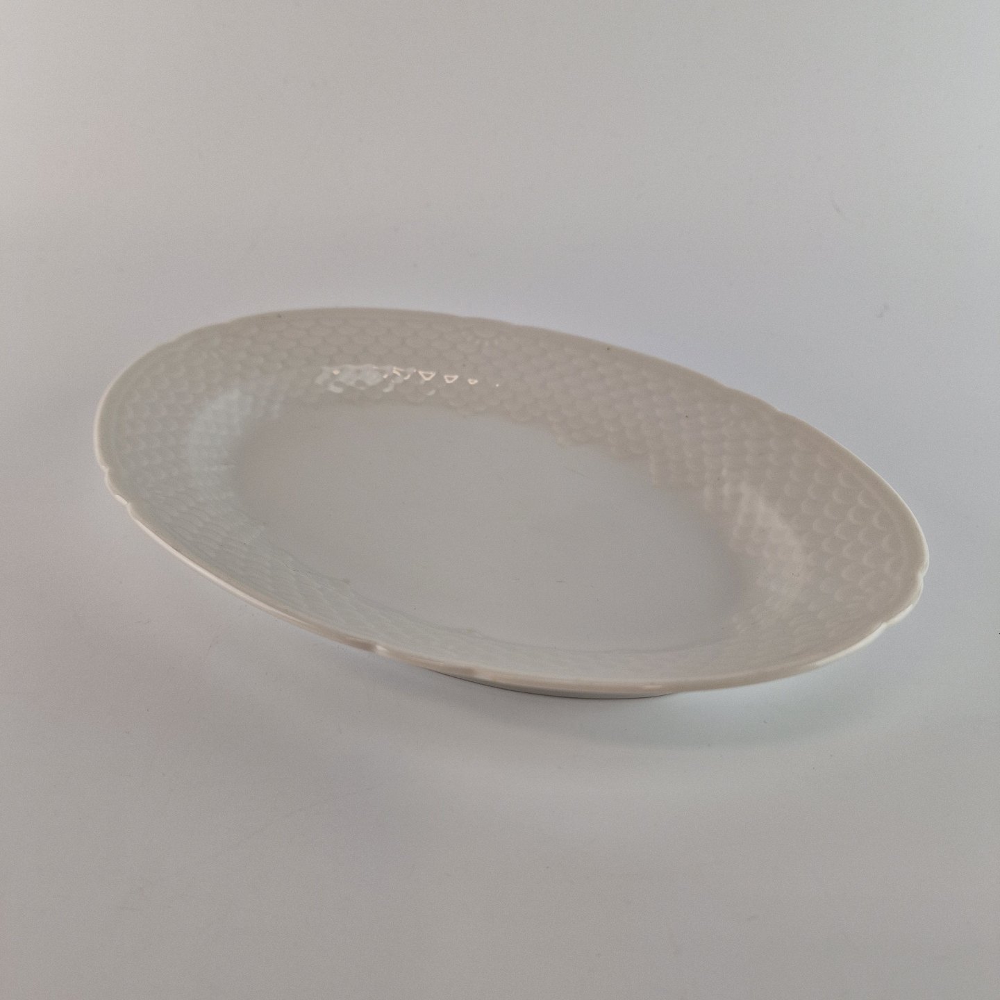 Elegance er hvidt glaseret porcelæn med et skæl lignende mønster
