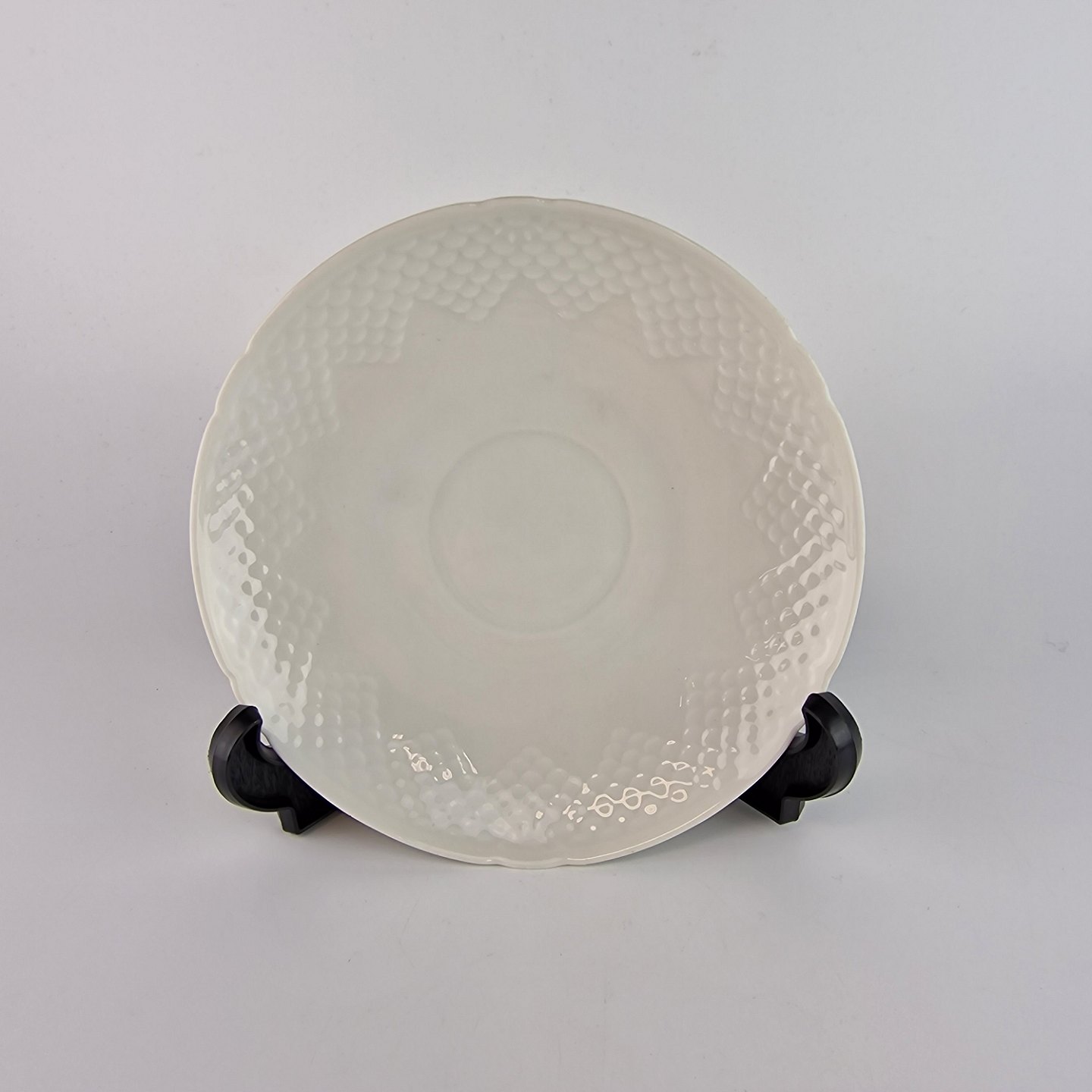 Elegance er hvidglaseret porcelæn med et skæl mønster
