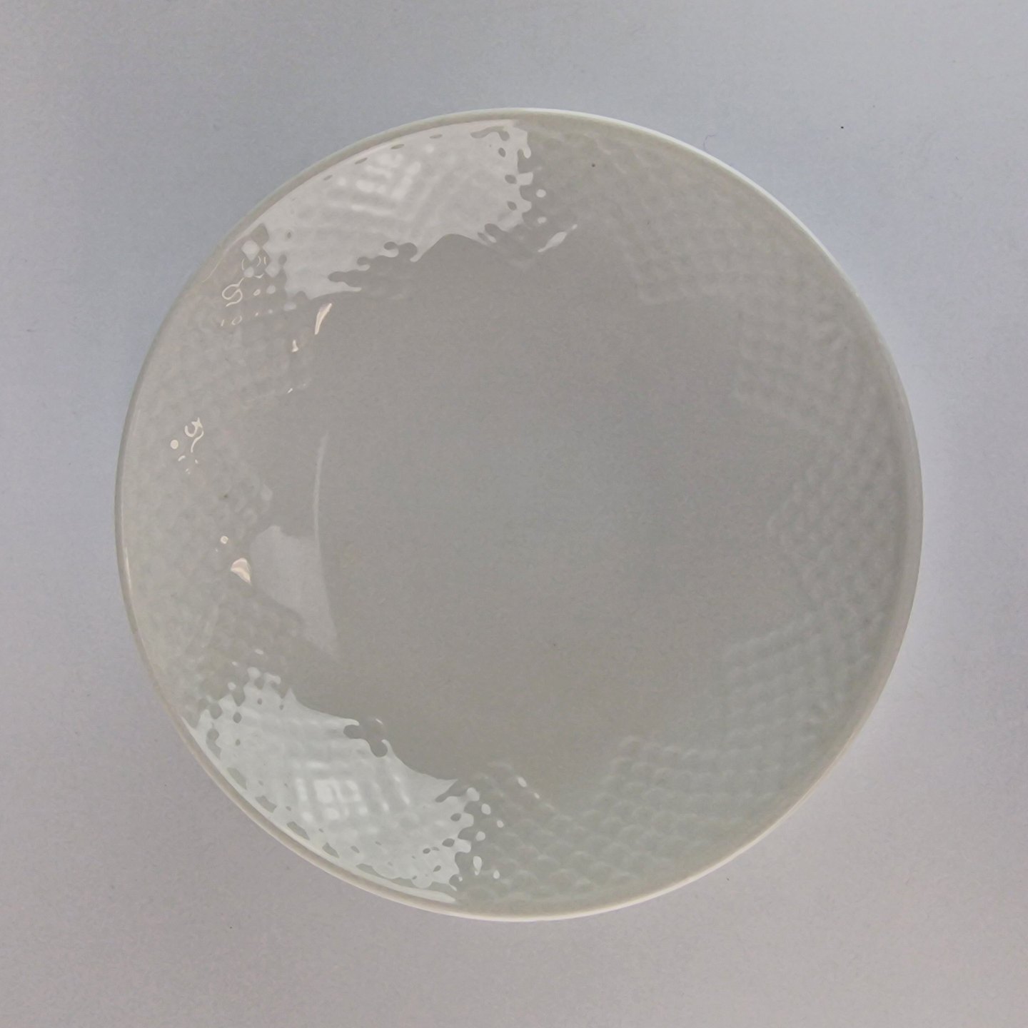 Elegance er hvidt glaseret porcelæn med et skæl lignende mønster