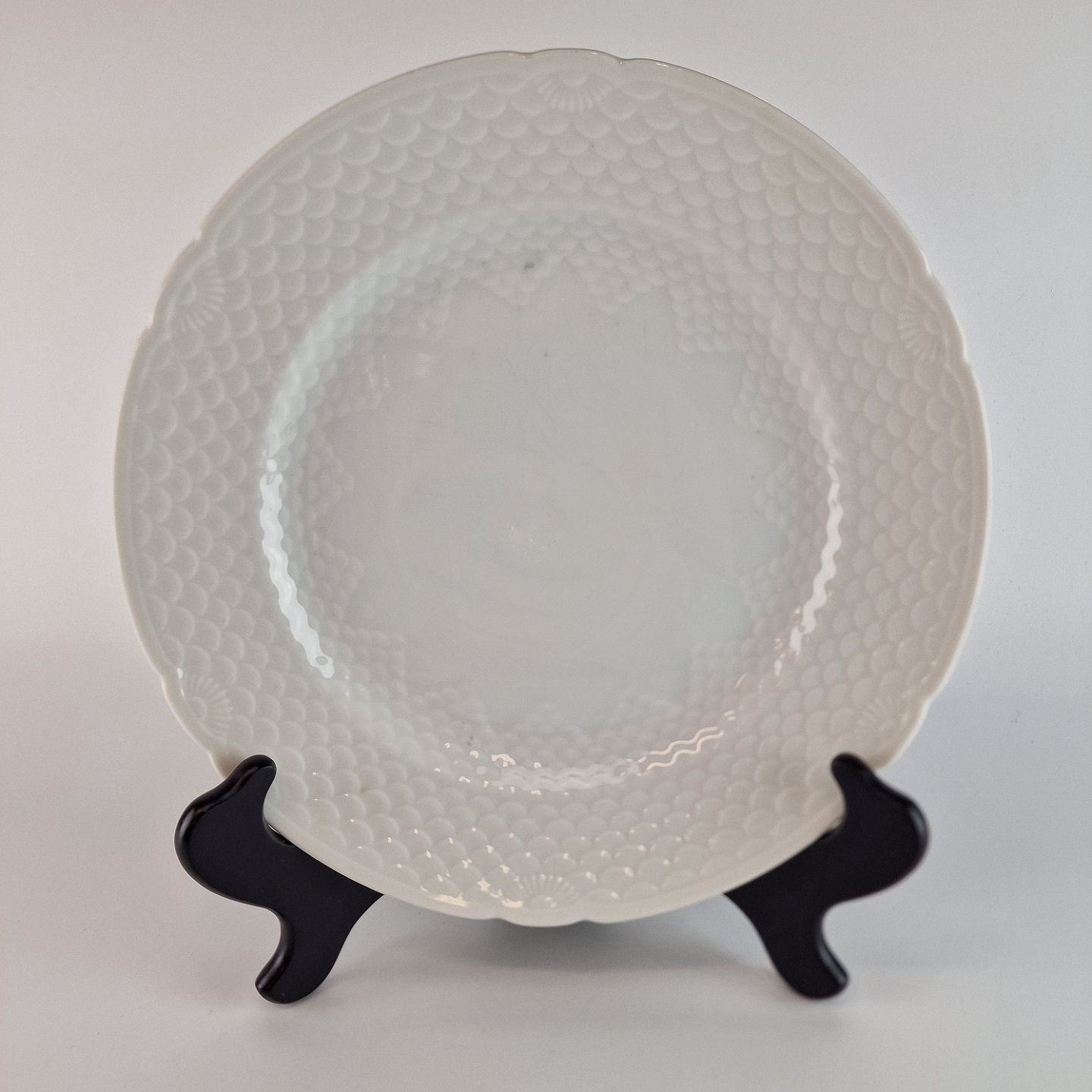 Elegance er hvidt glaseret porcelæn med et skæl lignende mønster