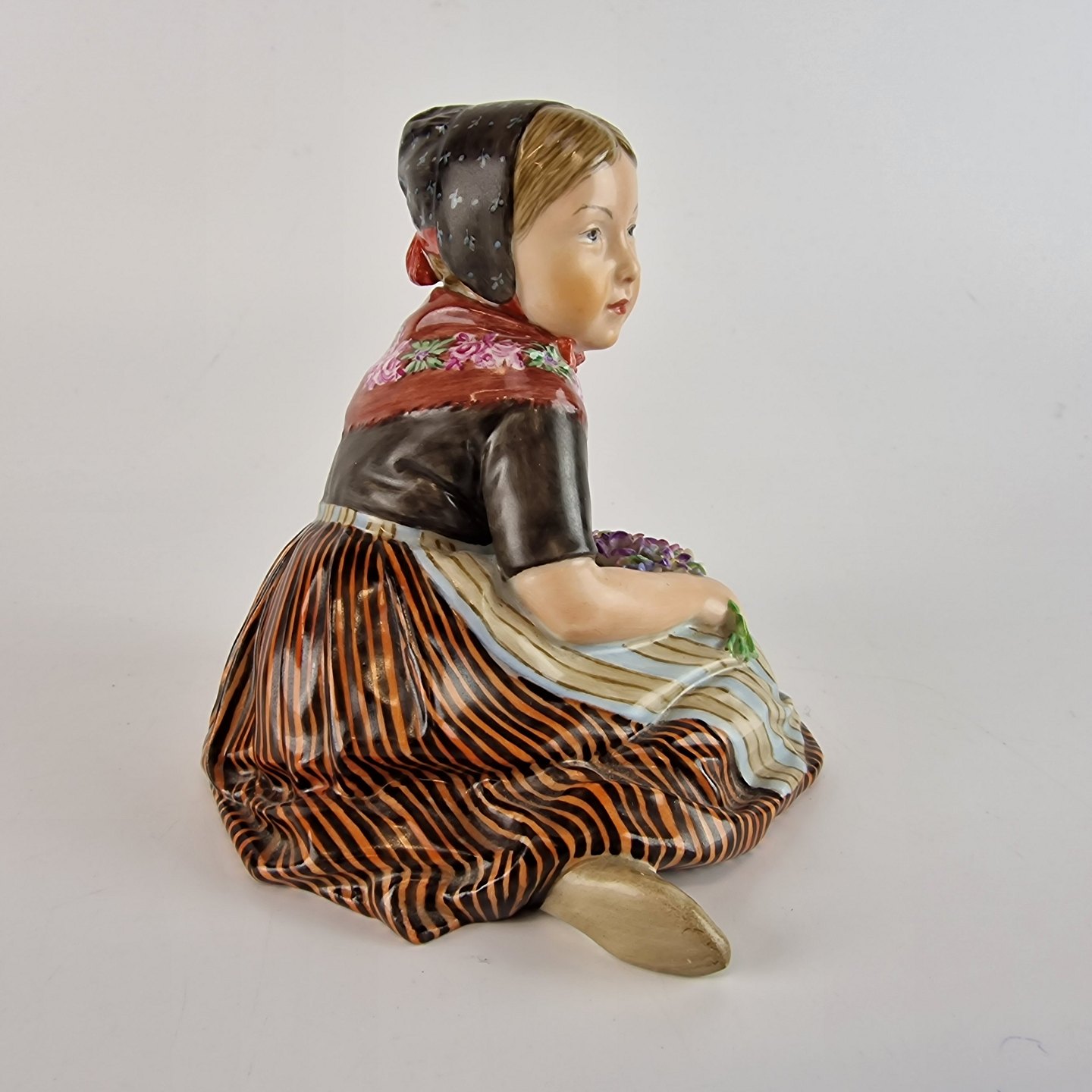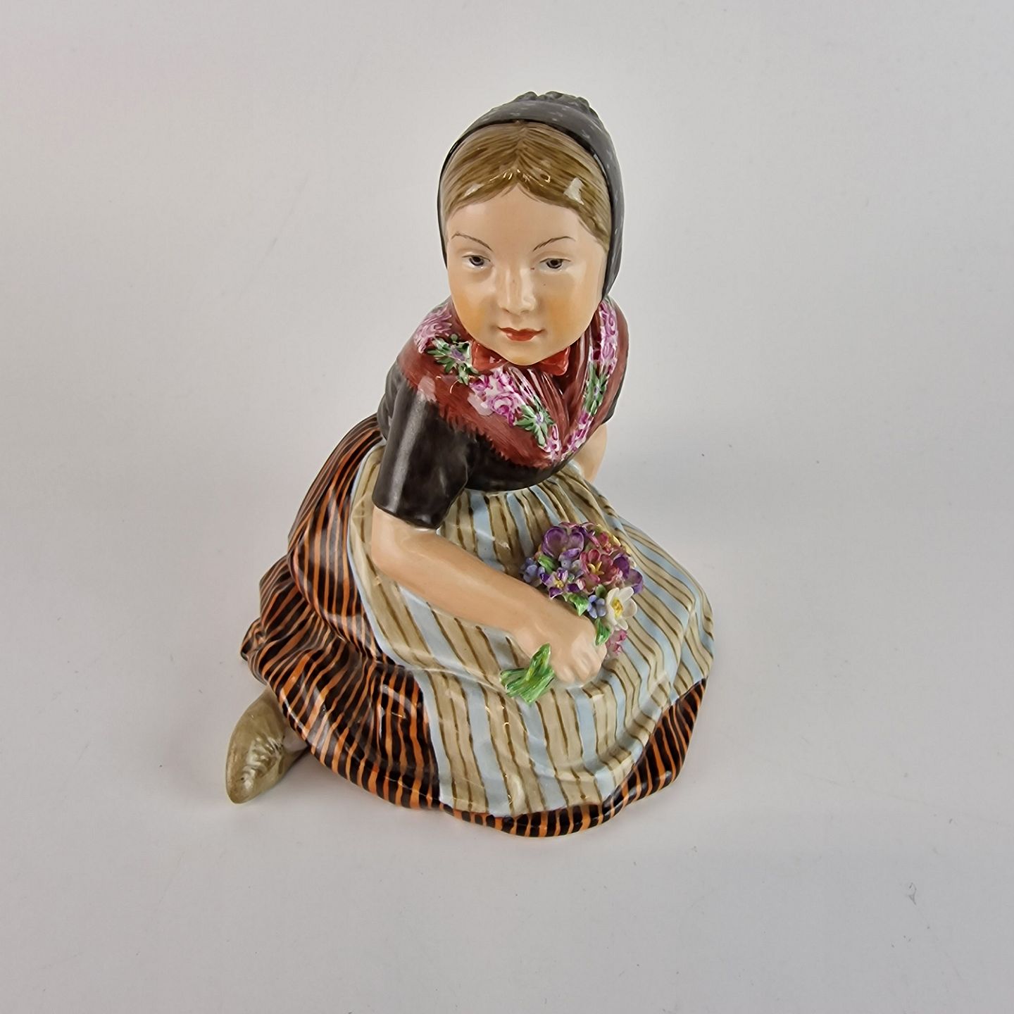 Kongelig håndmalet porcelænsfigur af en pige med blomsterbuket. Nr 12416