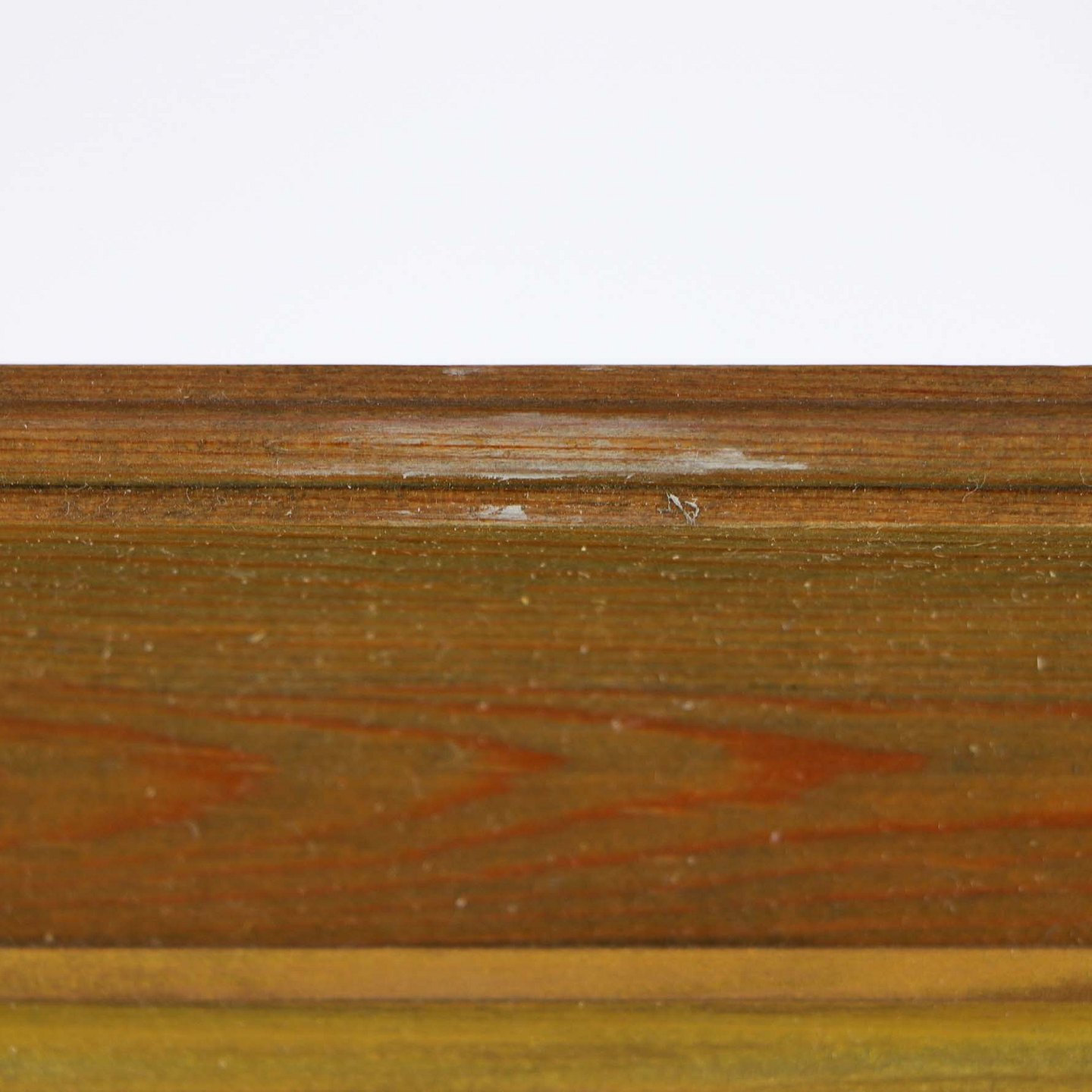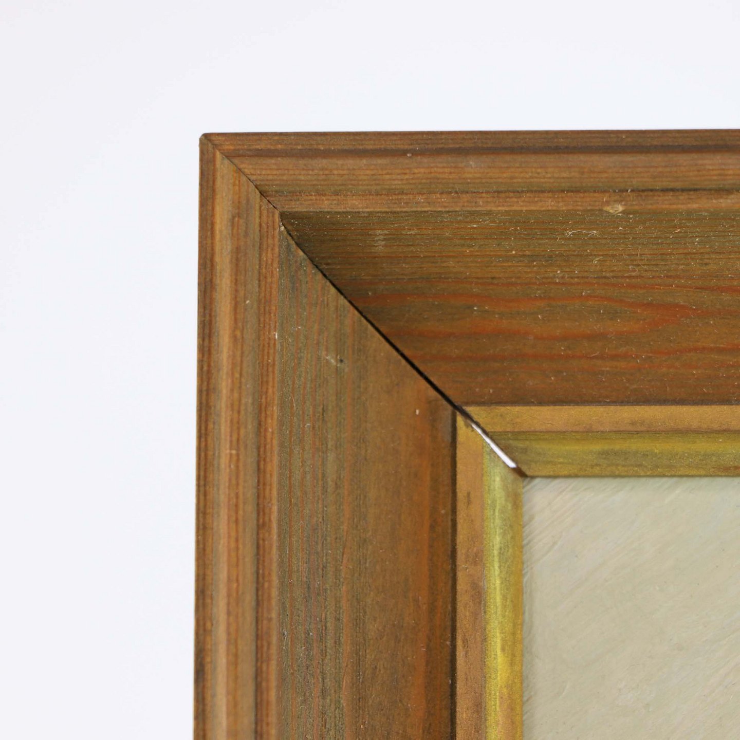 Oliemaleri på plade med træramme. Portrætmaleri set bagfra af lyshåret pige, som står i vandkanten