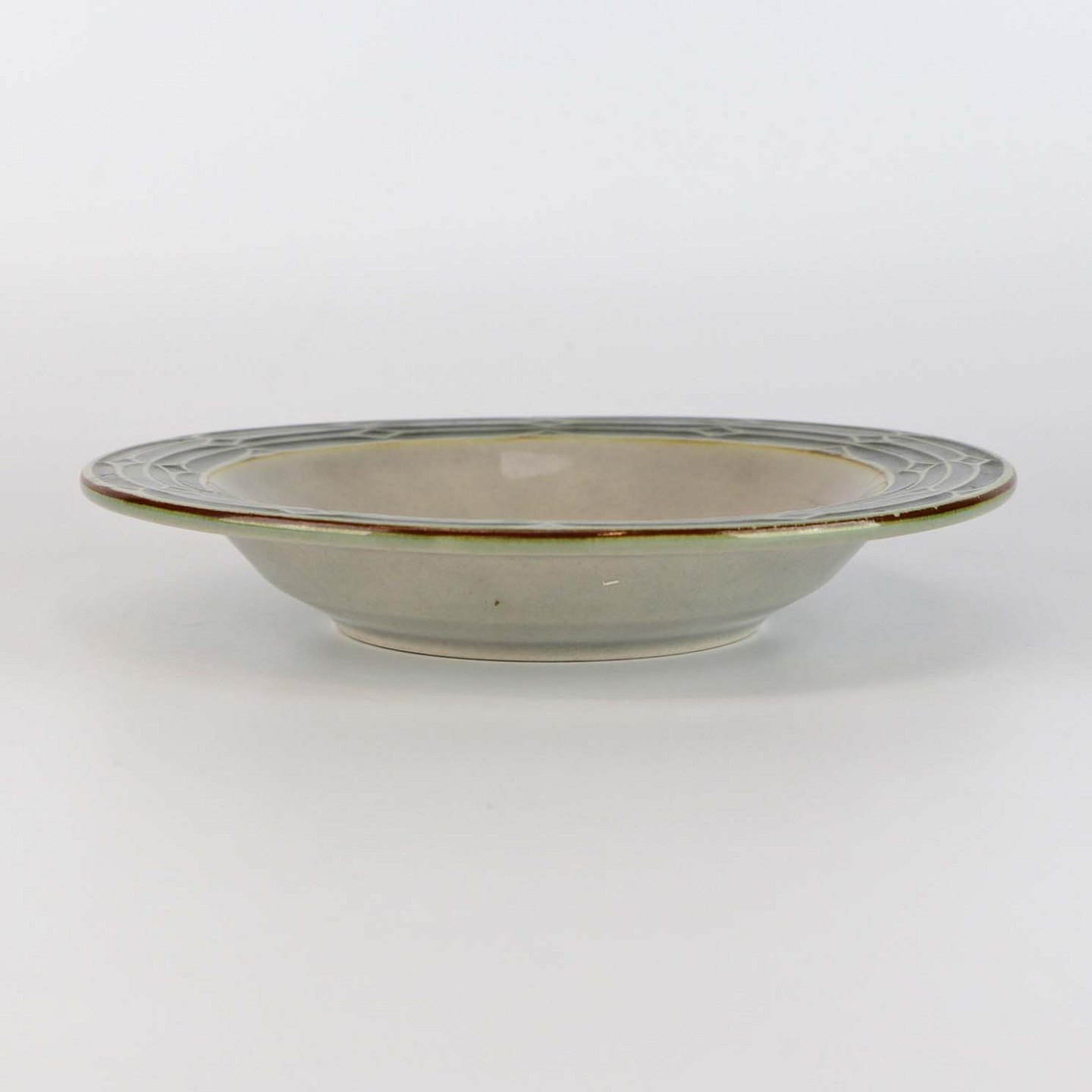 Lav skål i stentøj. No 337 med teksten: