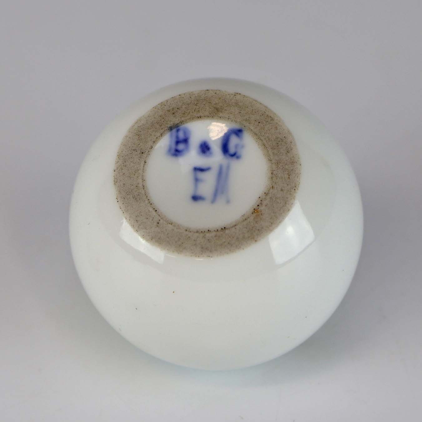 Bordkortholder af porcelæn. Hvidglaseret og dekoreret med en guldsmed