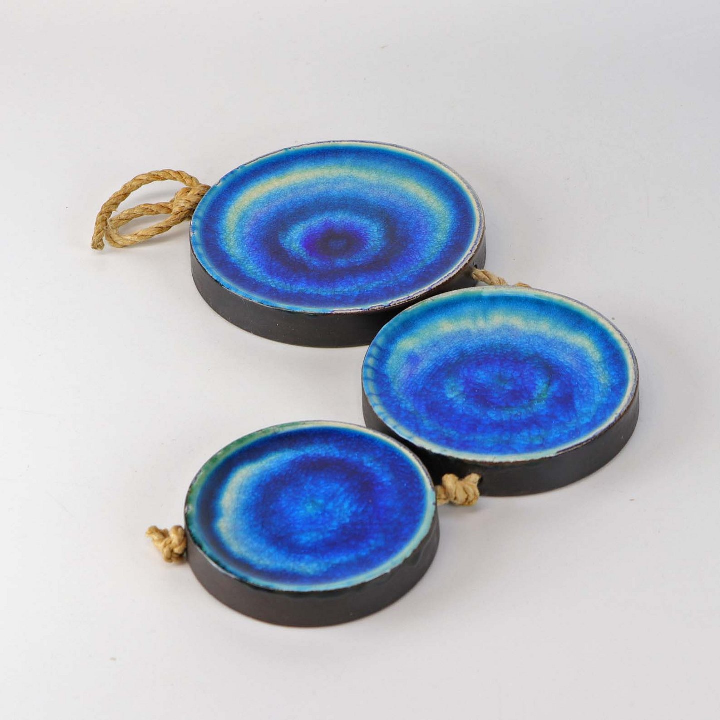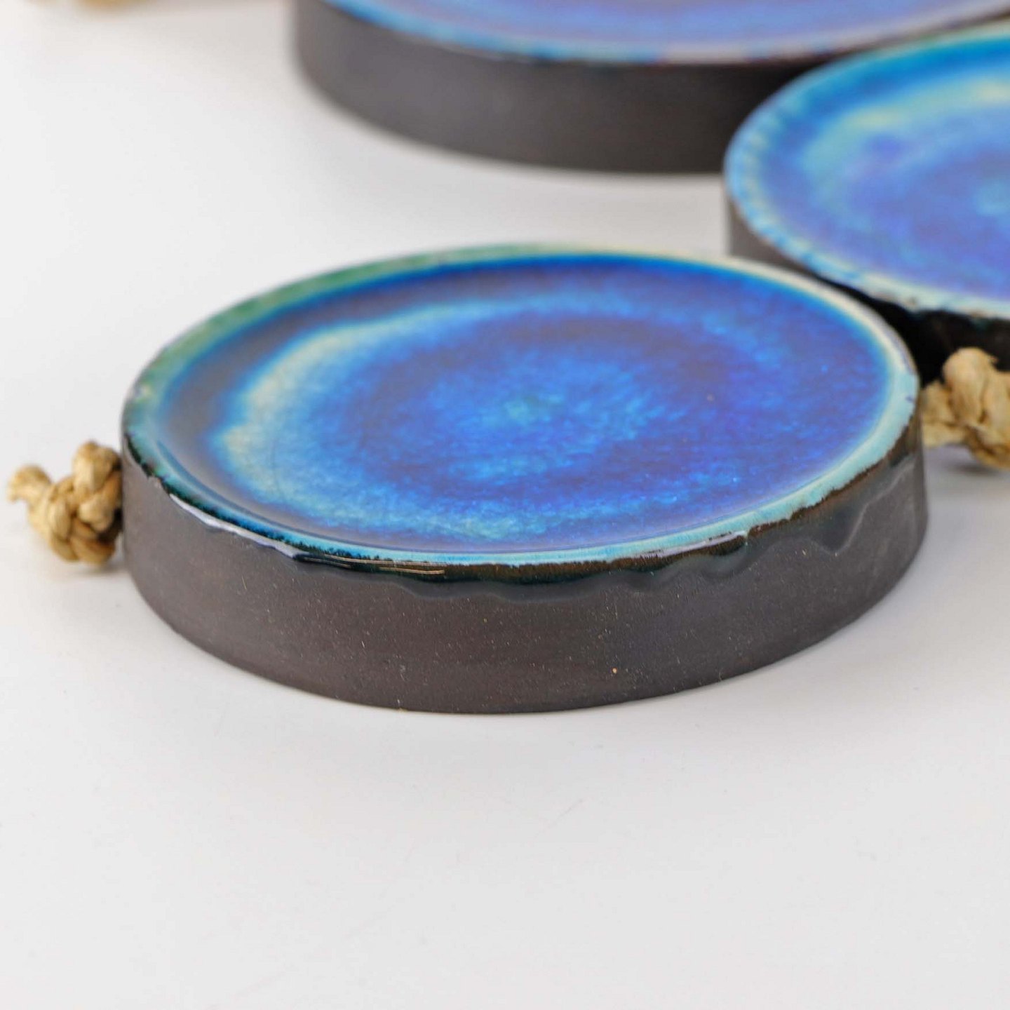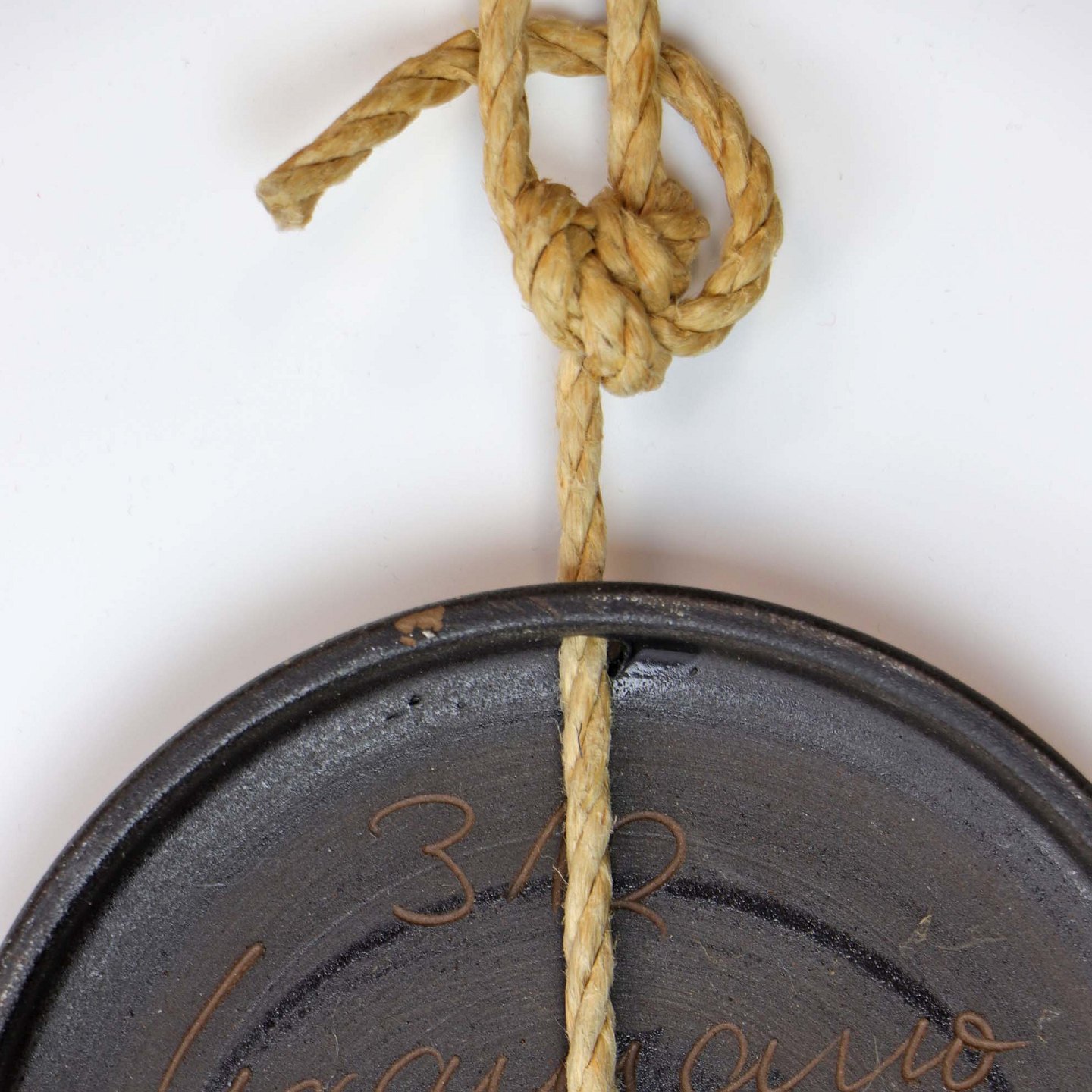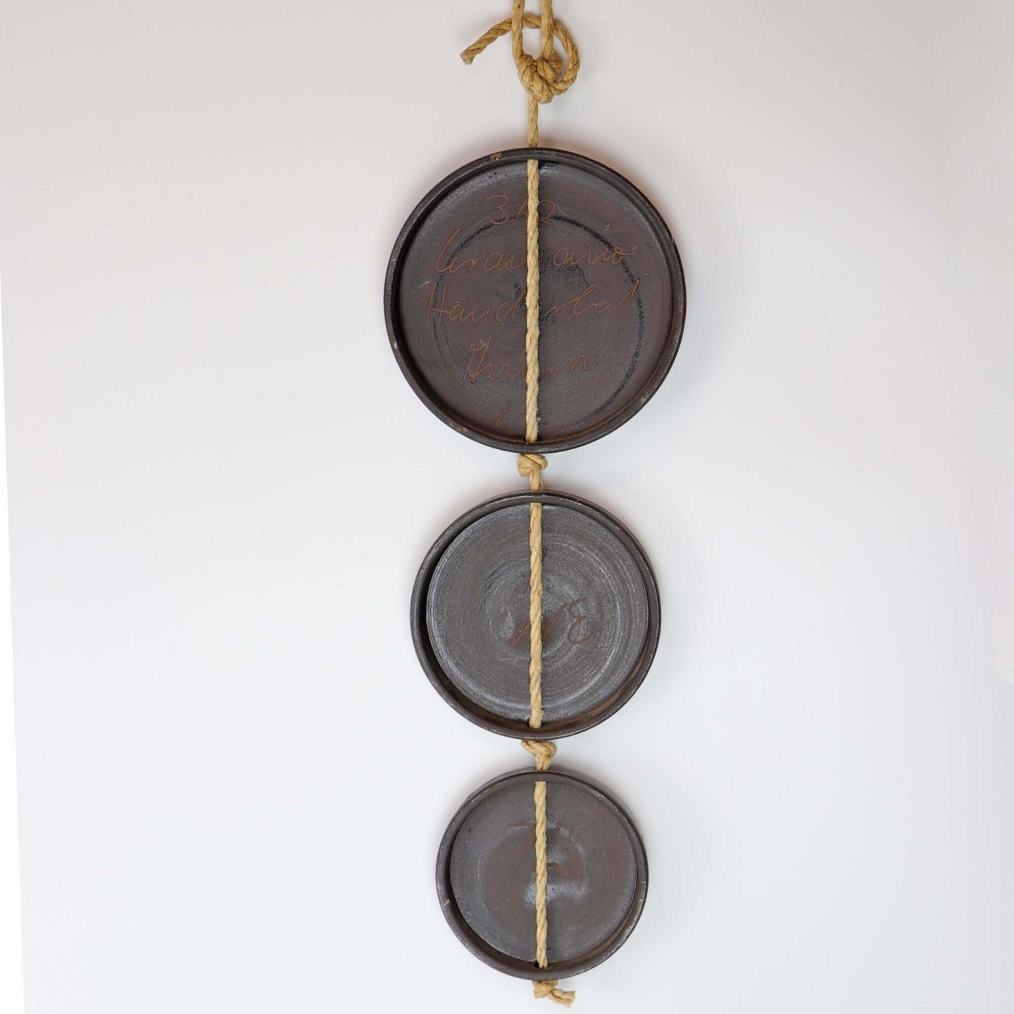 Ophæng med runde plader af glaseret keramik, bundet sammen med reb. No 312