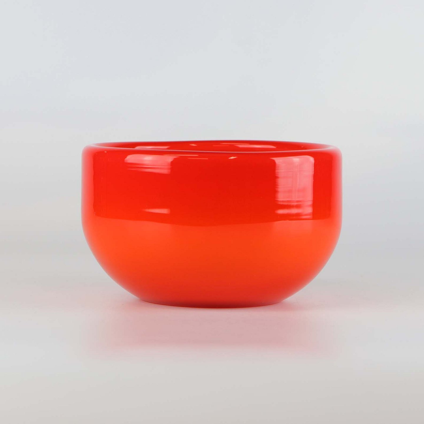 Skål af orangerød mundblæst glas fra serien Palet