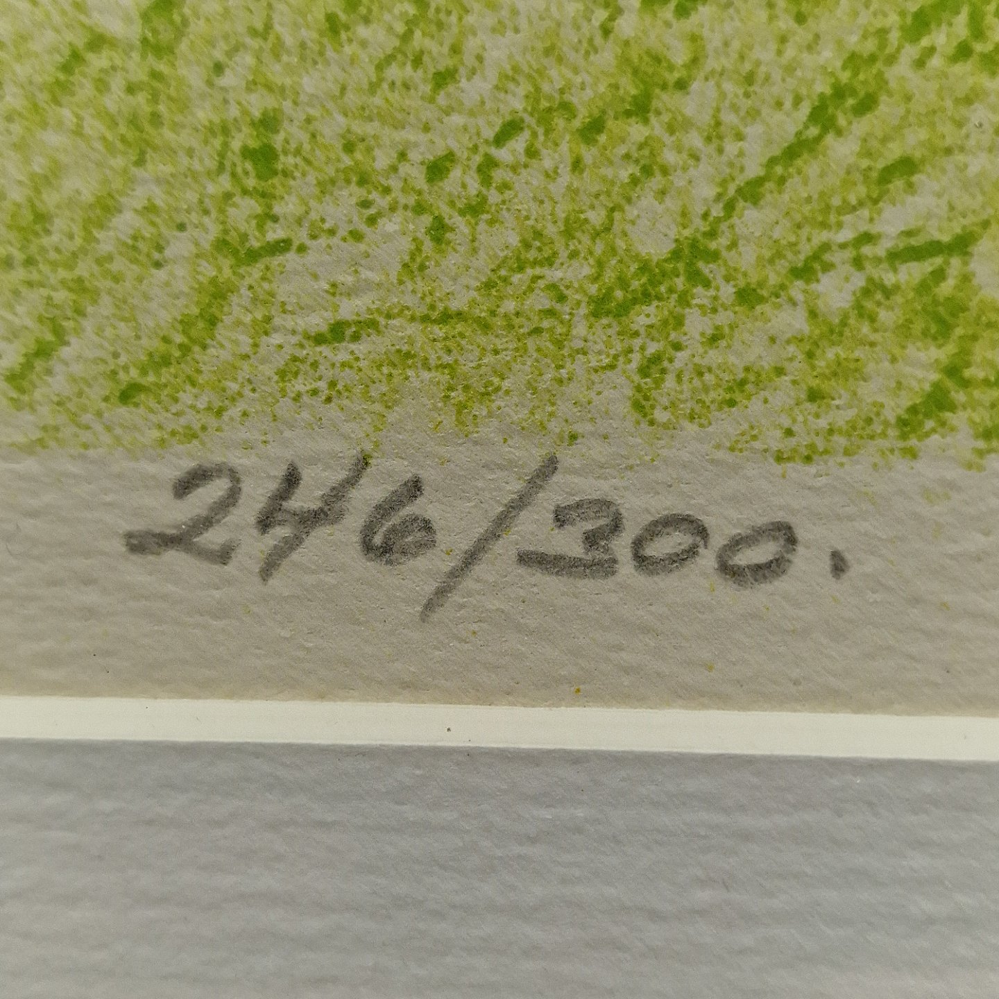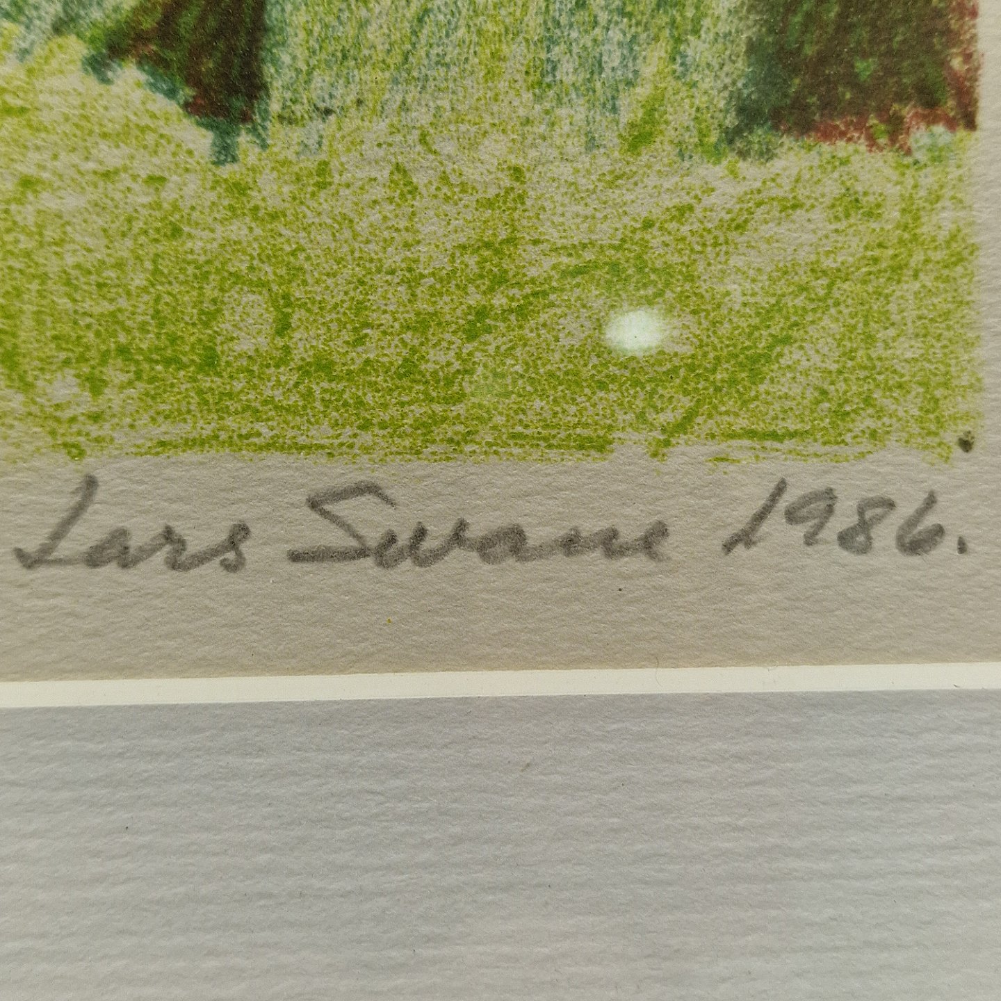 Litografi på pap med motiv af skovbund og træer. Dateret 1986. Nr. 246/300