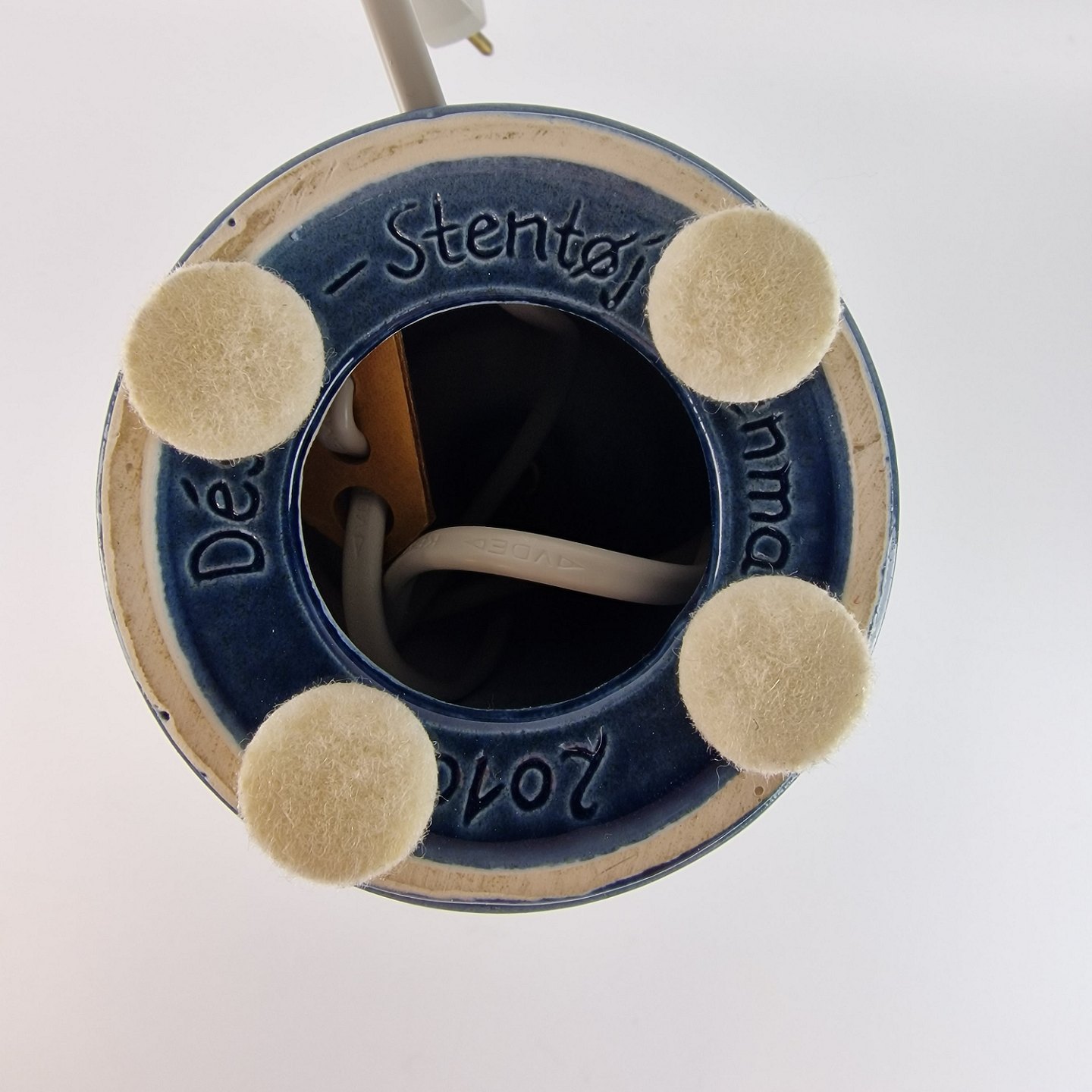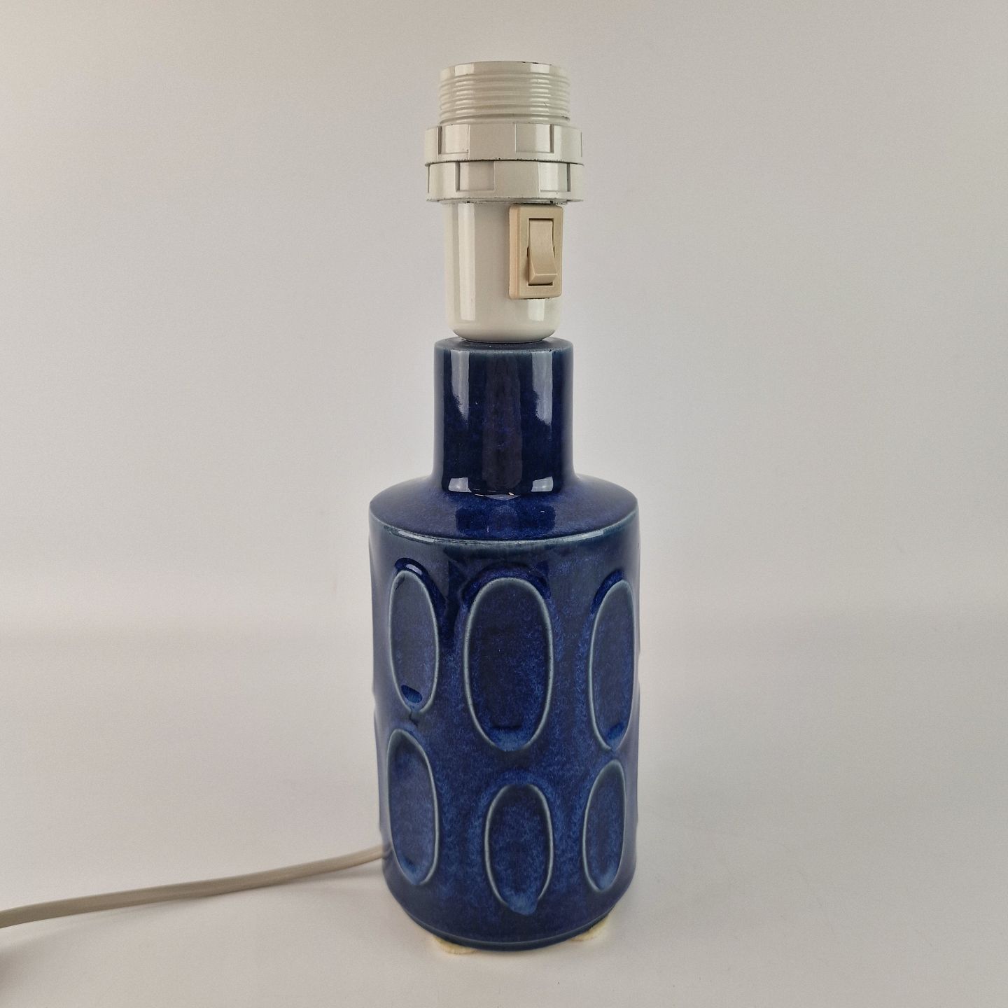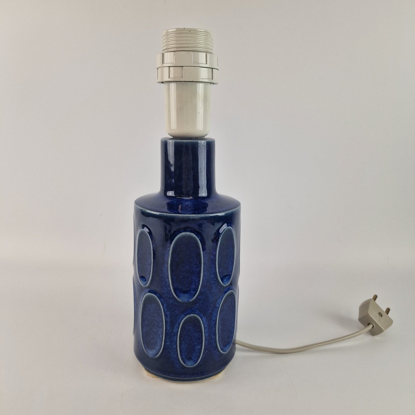 Lampefod i stentøj dekoreret med ovale cirkler med blå glasur nr 2010