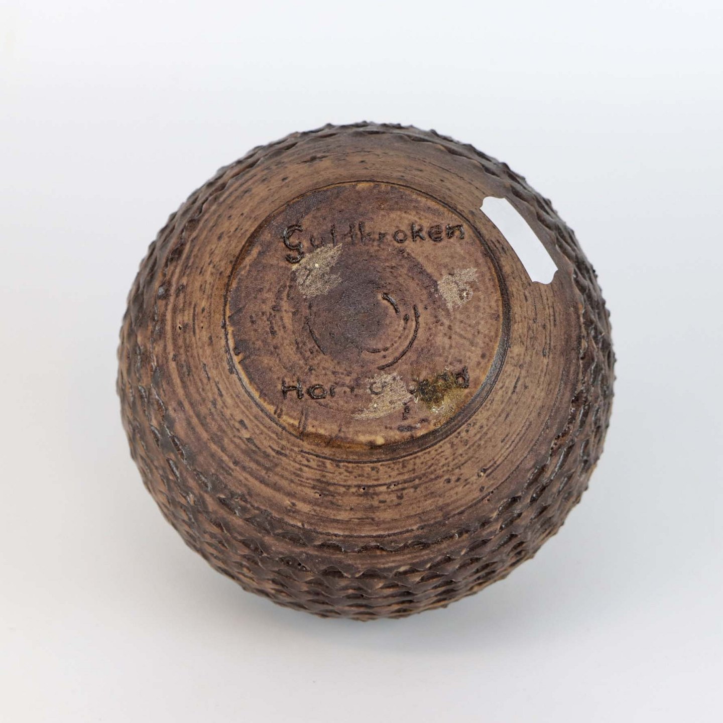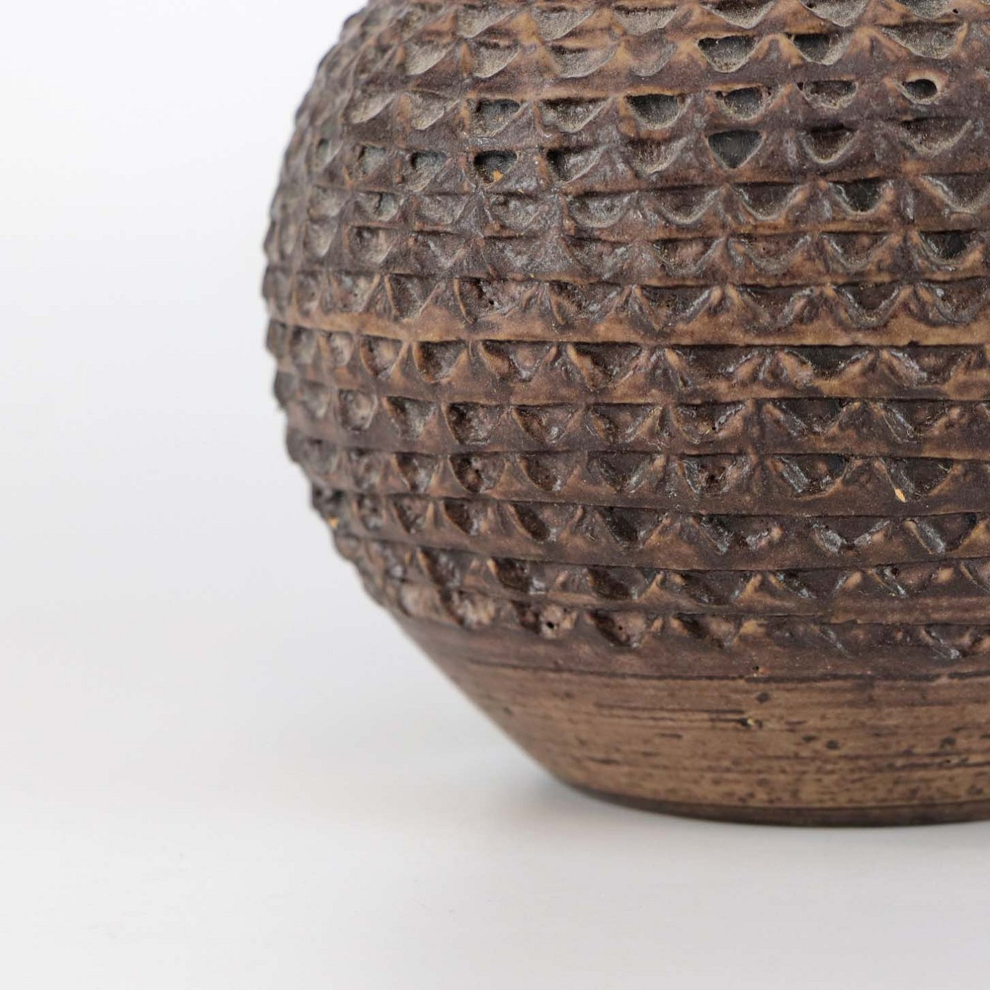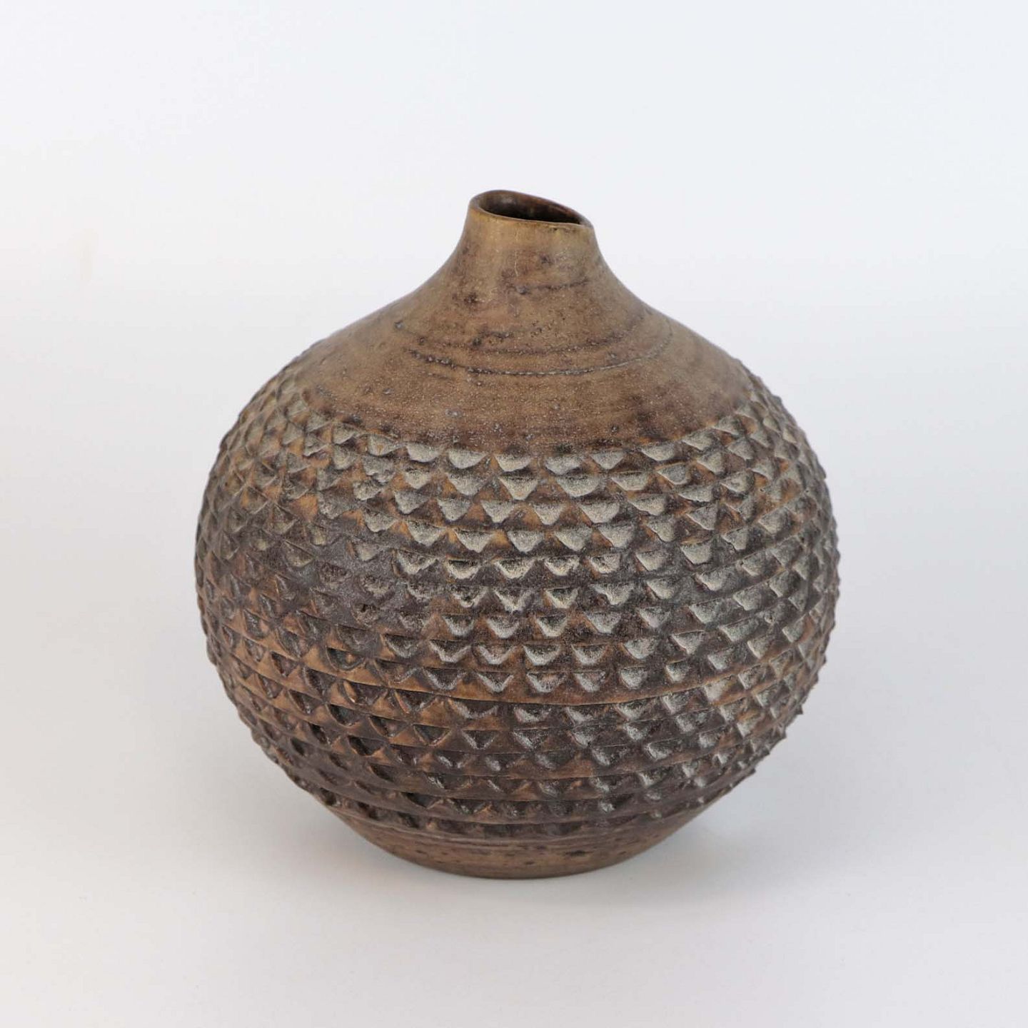 Mønstret kuglevase med i stentøj i brunlige nuancer