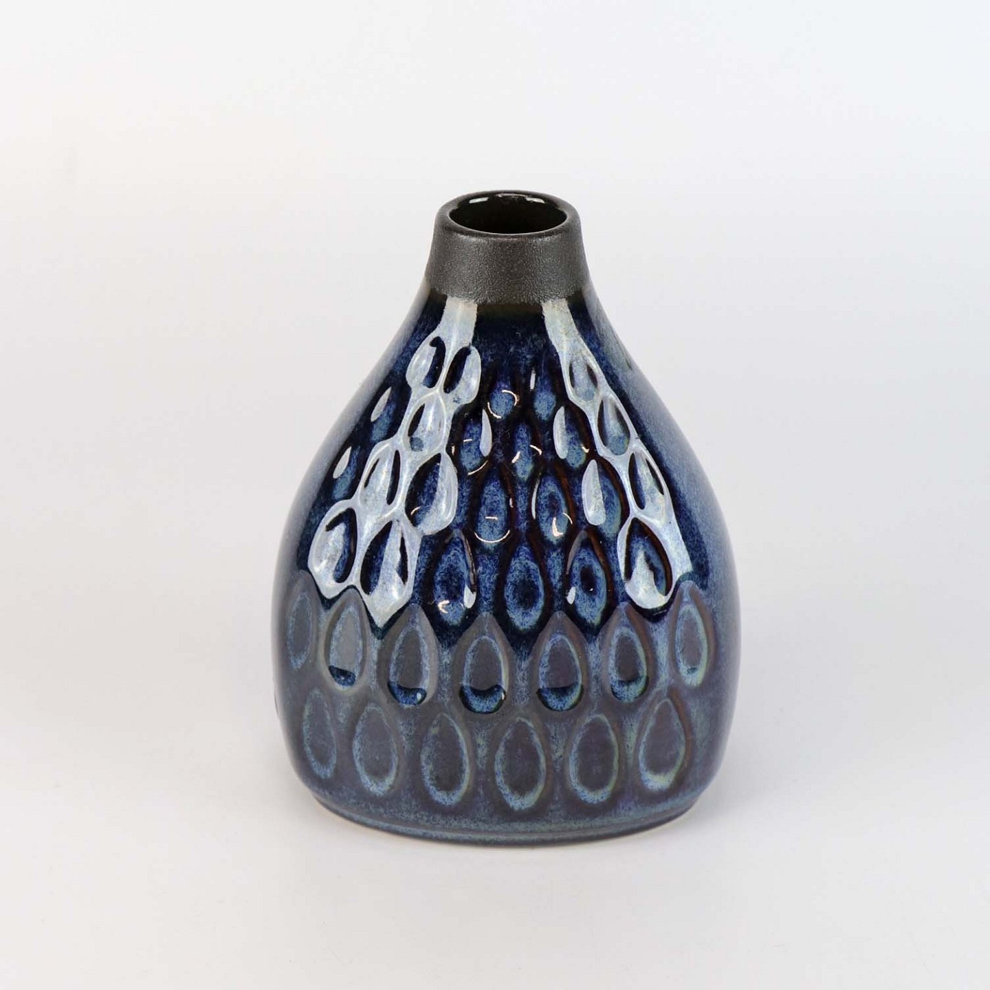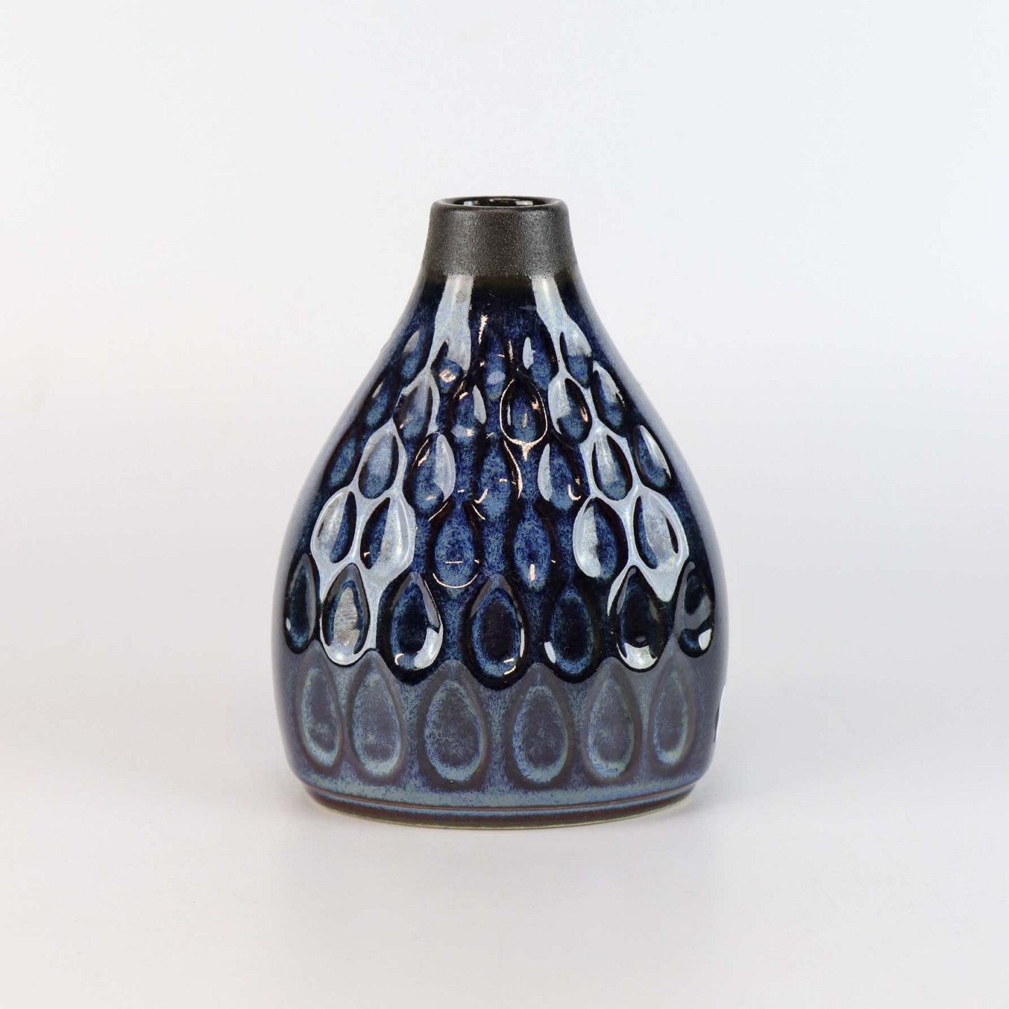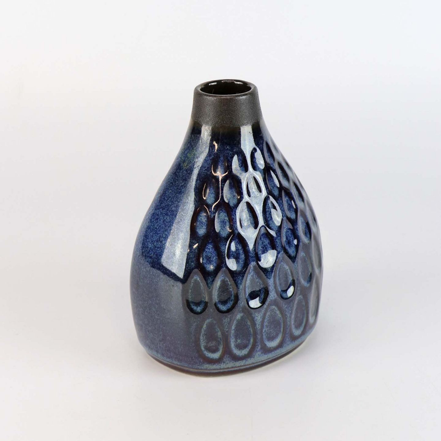 Vase i stentøj med blå glasur og dråbeformet motiv no 3328