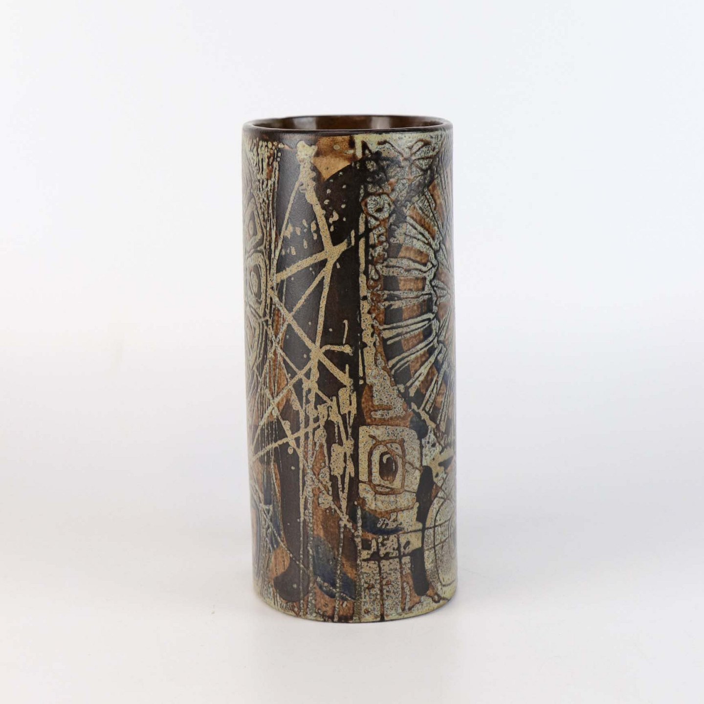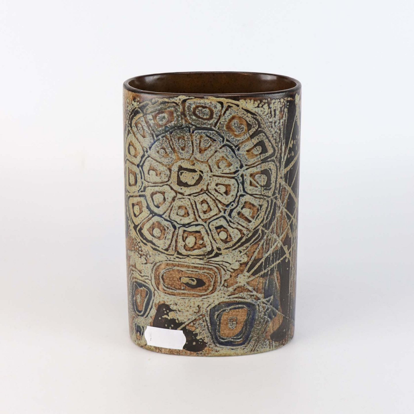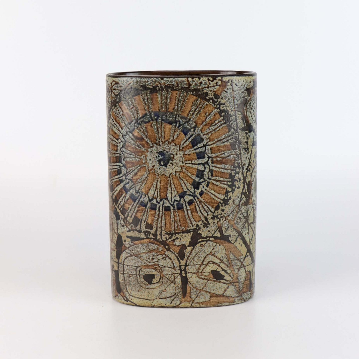 Oval Baca vase i fajance med mønster i brunlige nuancer no 870/3740