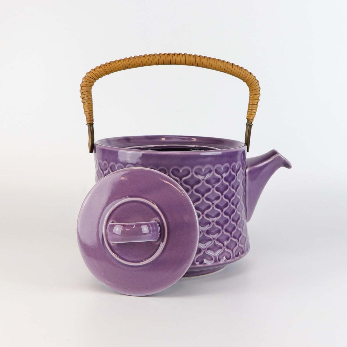 Sjælden tekande i stentøj med hank i messing omgivet af naturflet fra stellet Lilla Cordial no 656