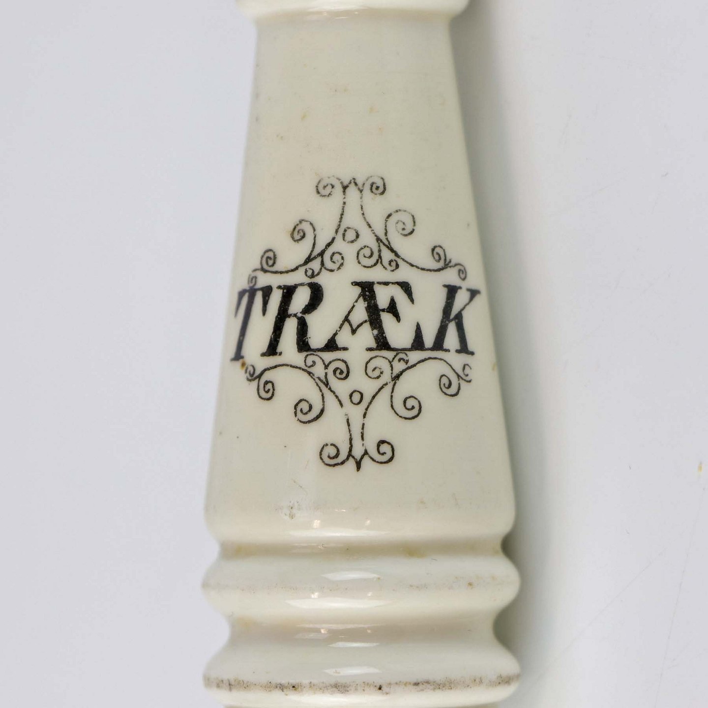 Gammelt håndtag i porcelæn og messing til ældre træk og slip toilet