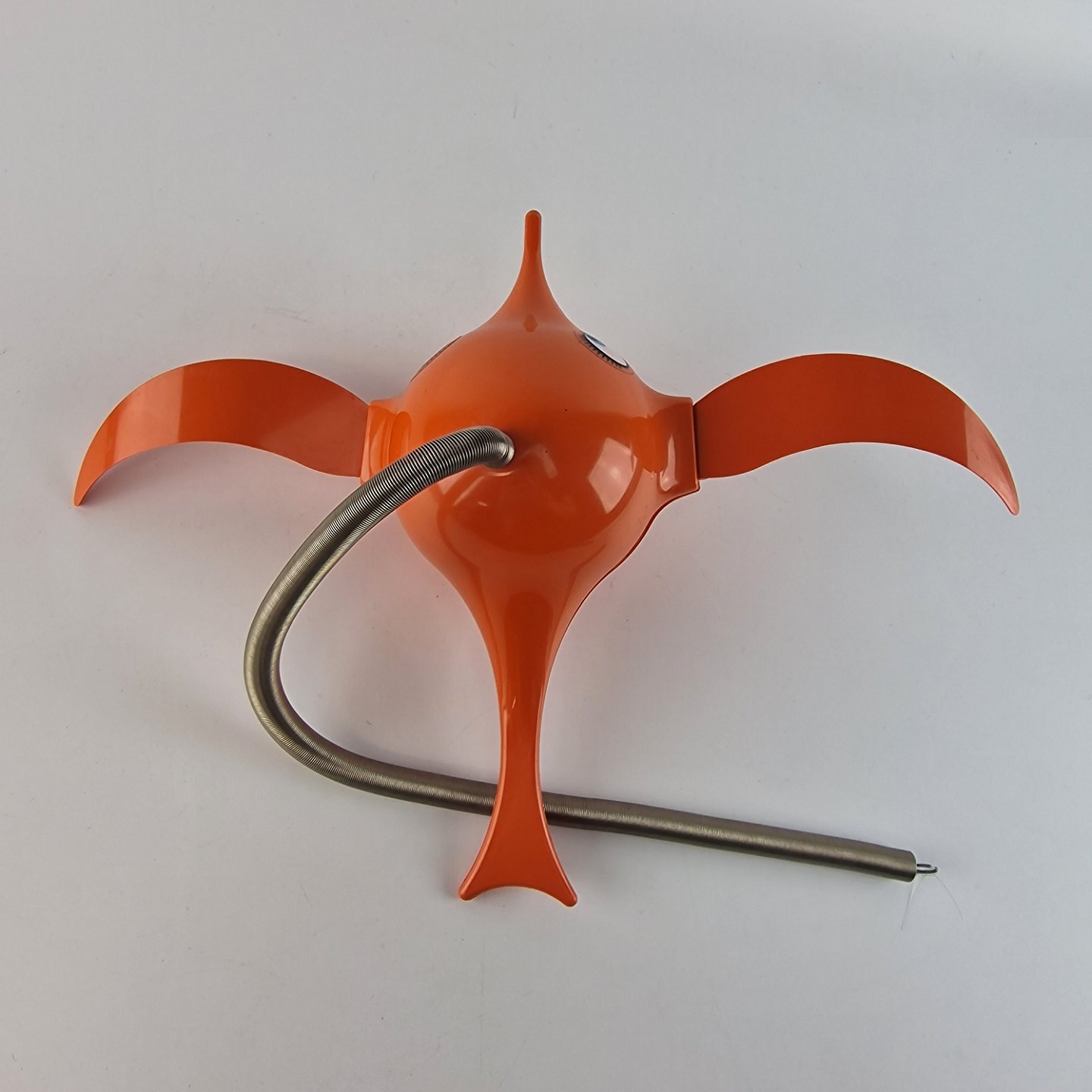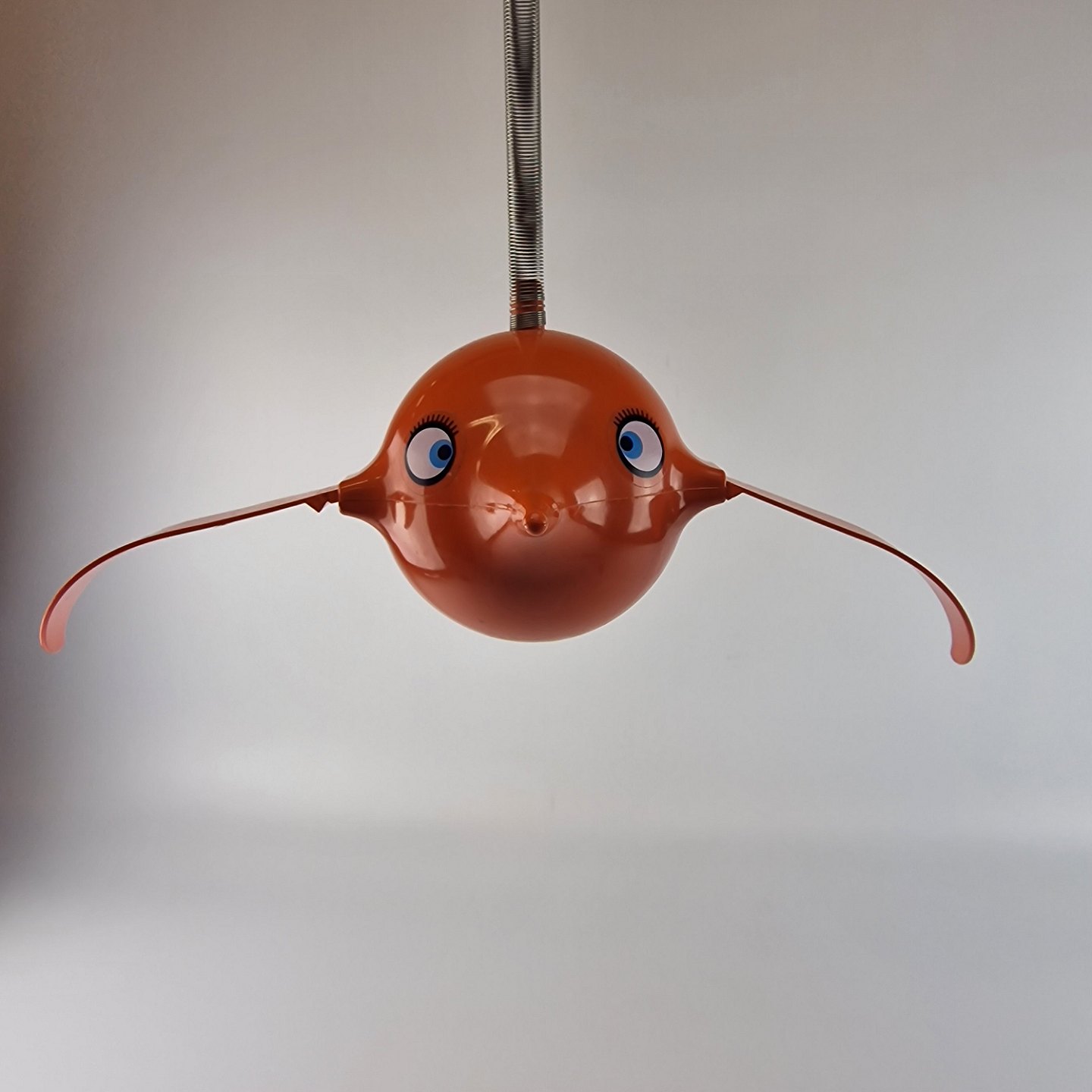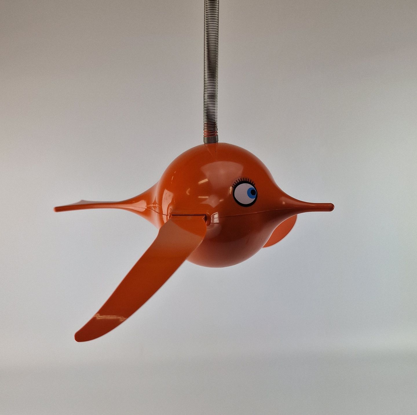 Vintage Hoptimist uro model Busy Birdie i rød plast med metal ophæng