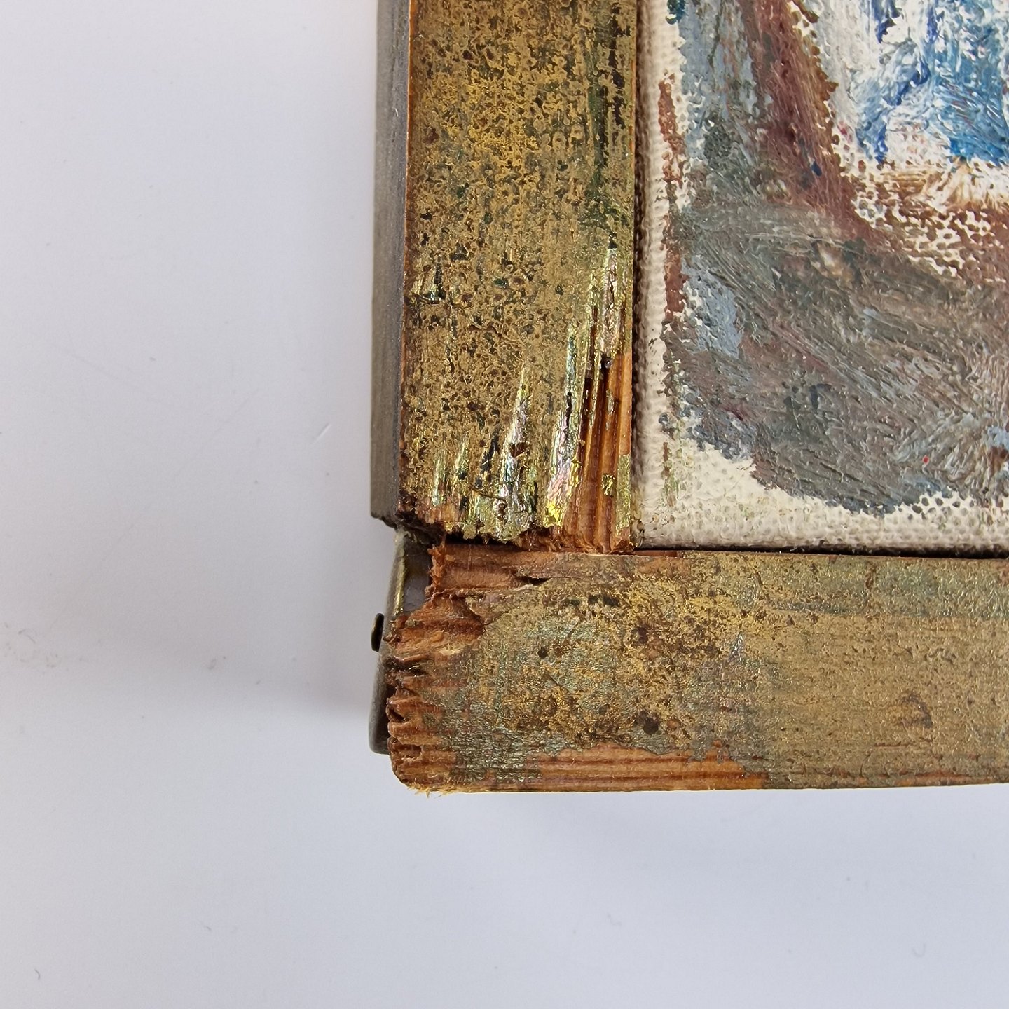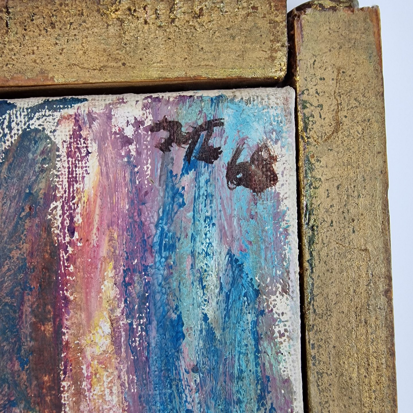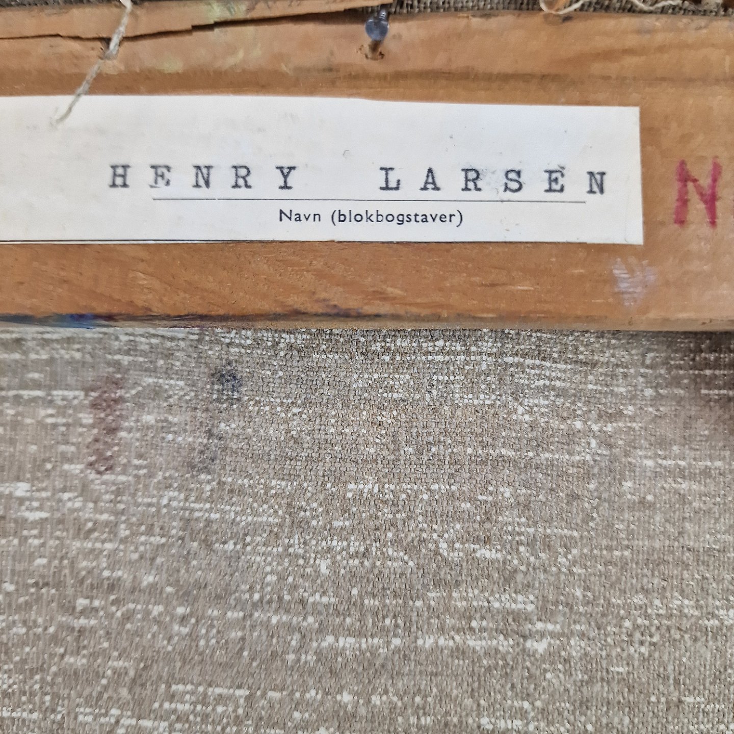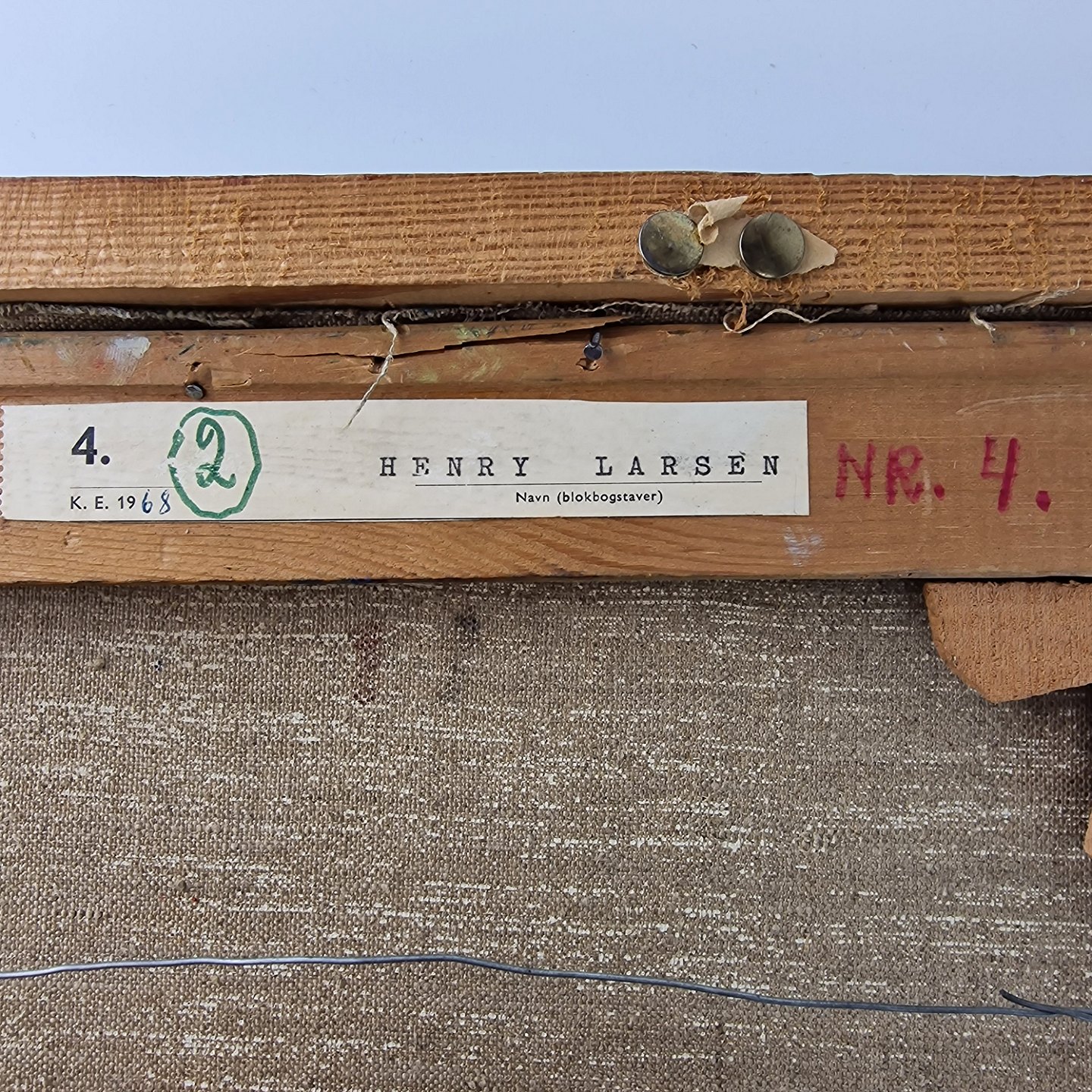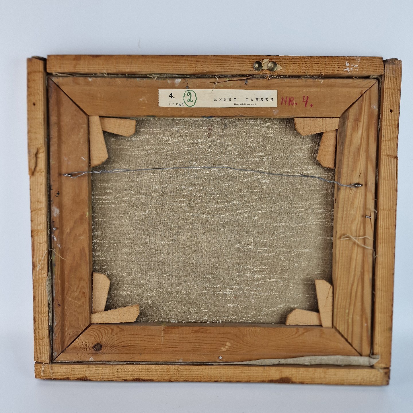 Maleri på lærred med abstrakt motiv. På bagsiden af rammen står der nr. 4