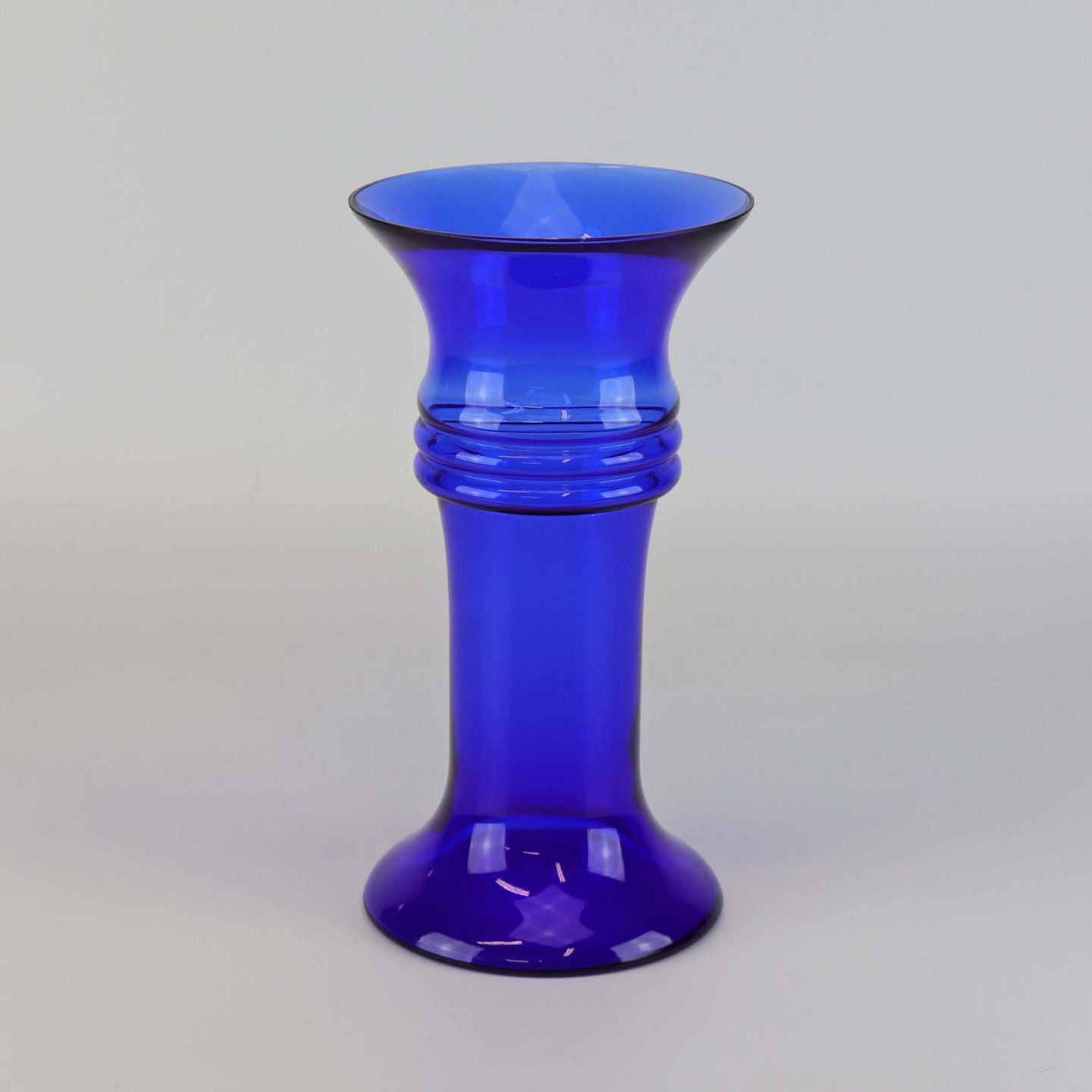 Vase i klar blåt mundblæst glas fra serien Harmony