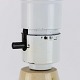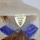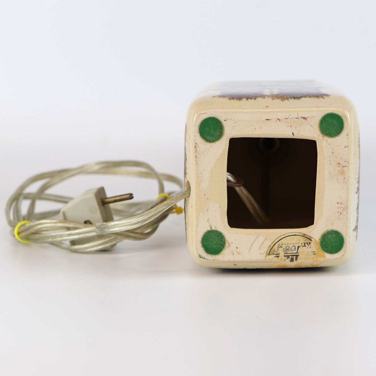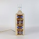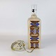 Bordlampe i glaseret keramik, dekoreret med kubisk mønster i blå og brun farver på sandfarvet baggrund
