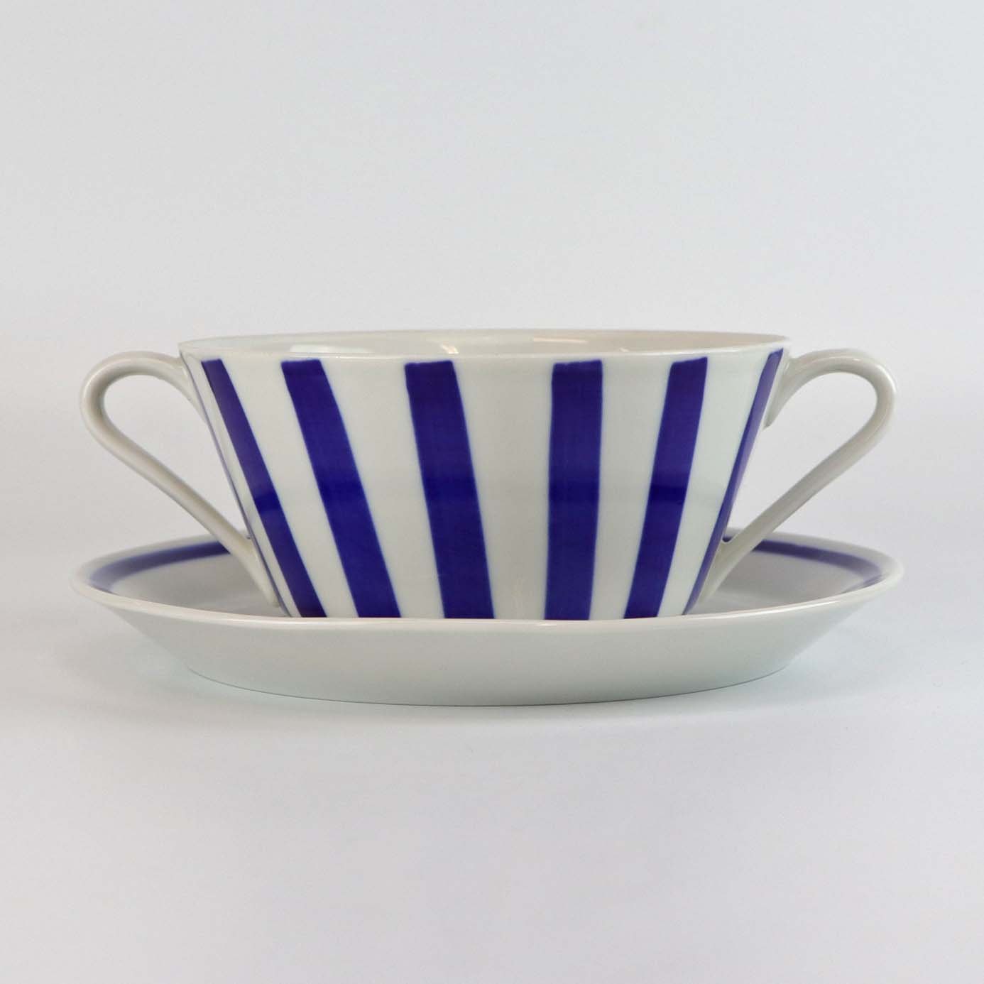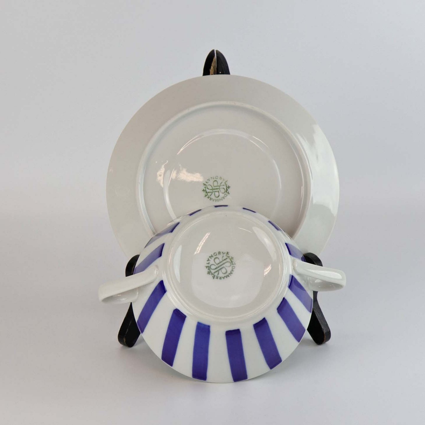 Boullionkop med underkop i porcelæn fra stellet blå striber