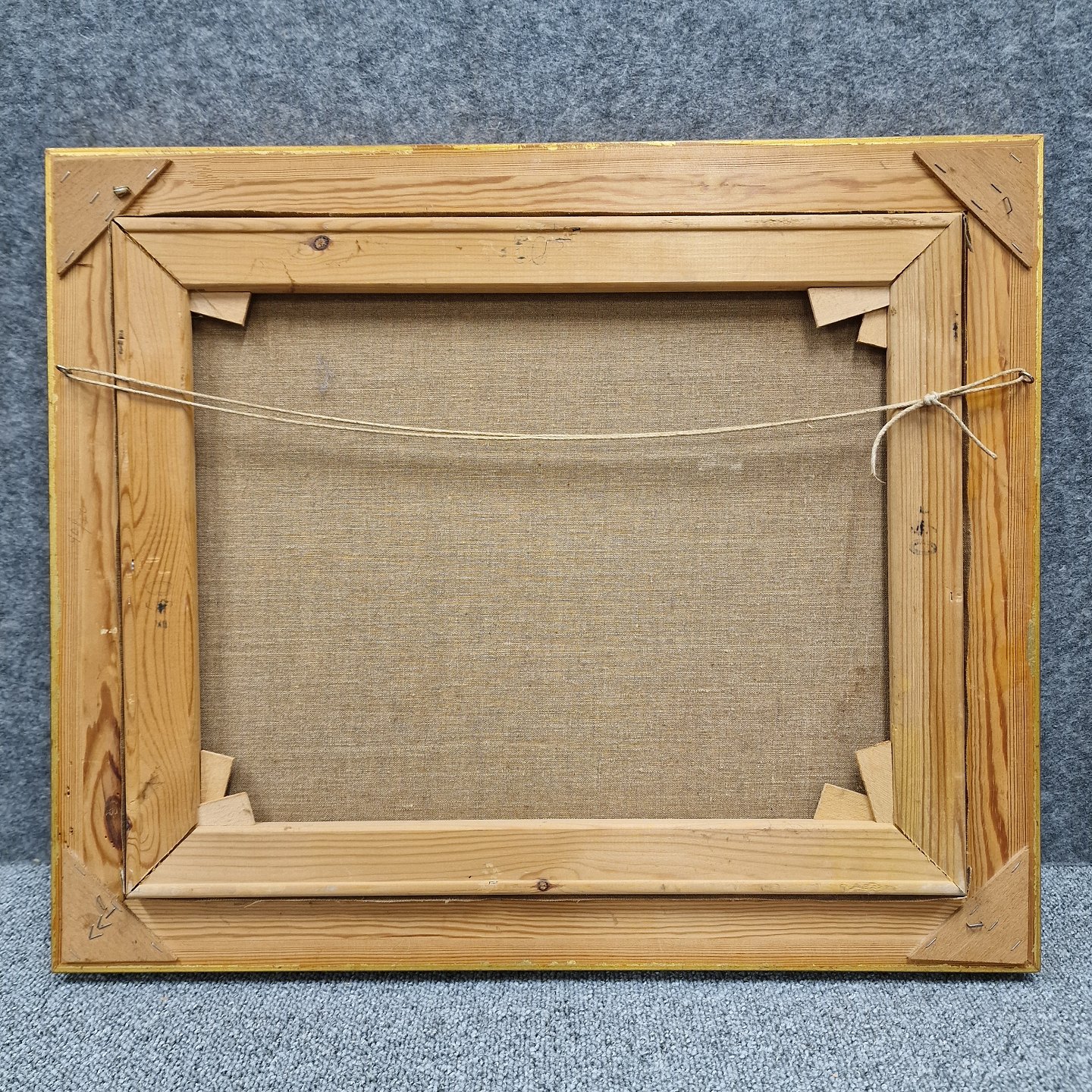 Natur maleri på lærred, med motiv af en skovvej med træer på begge sider. Sandsynligvis Rold skov