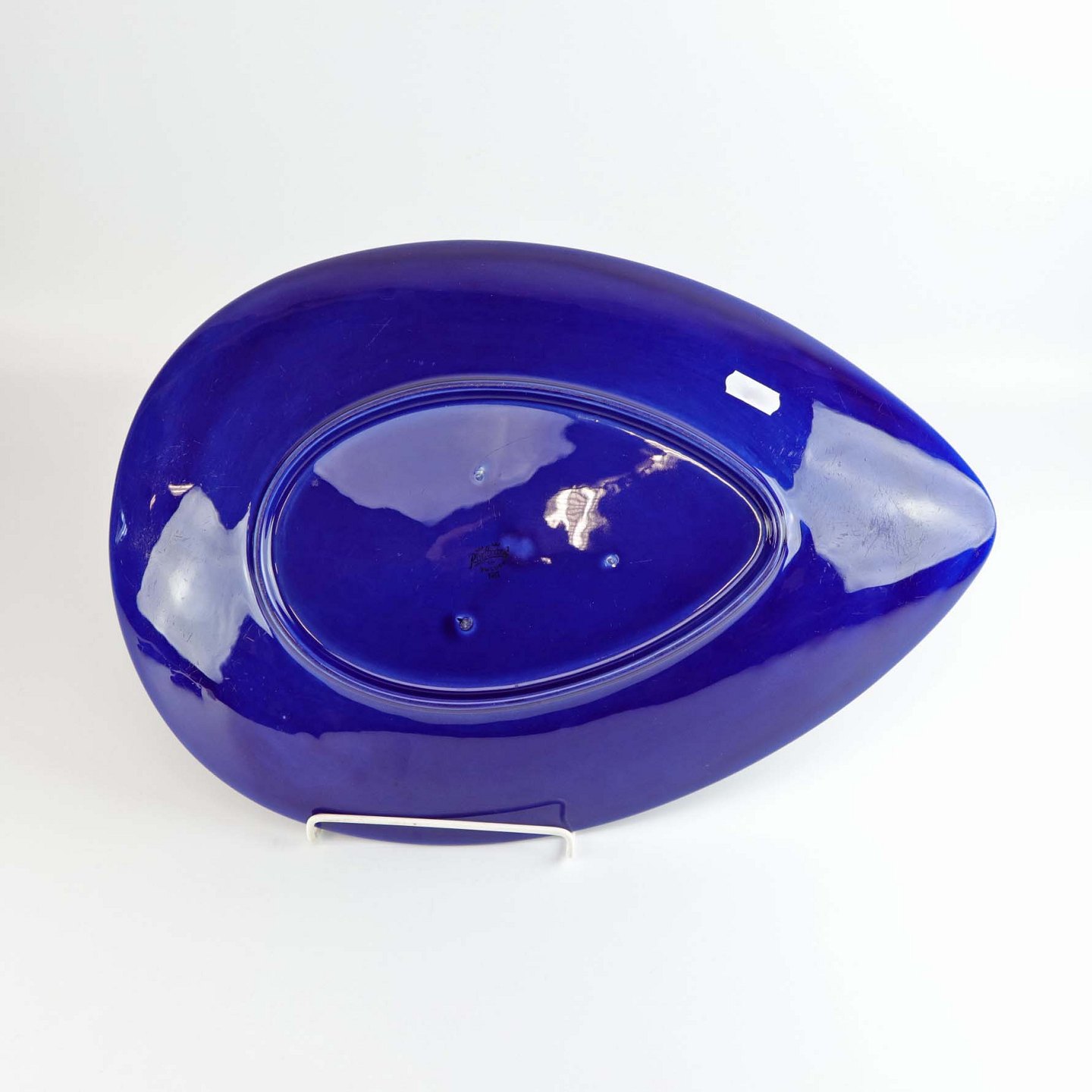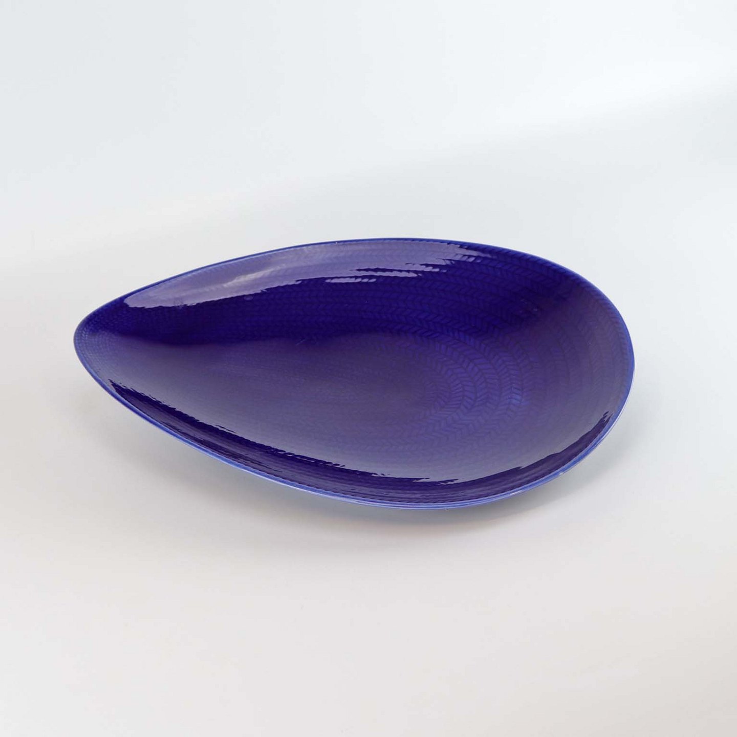 Stor dråbeformet fad i fajance fra stellet Blå Eld nr. 581