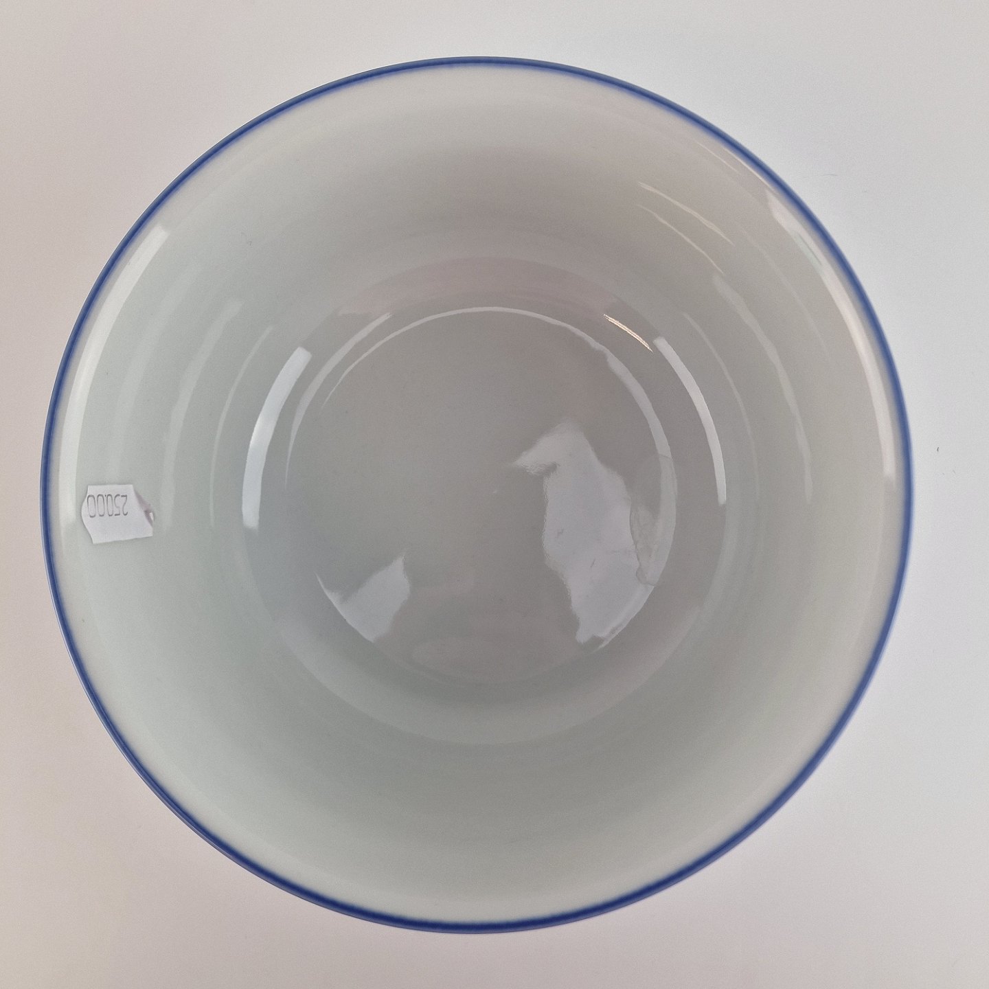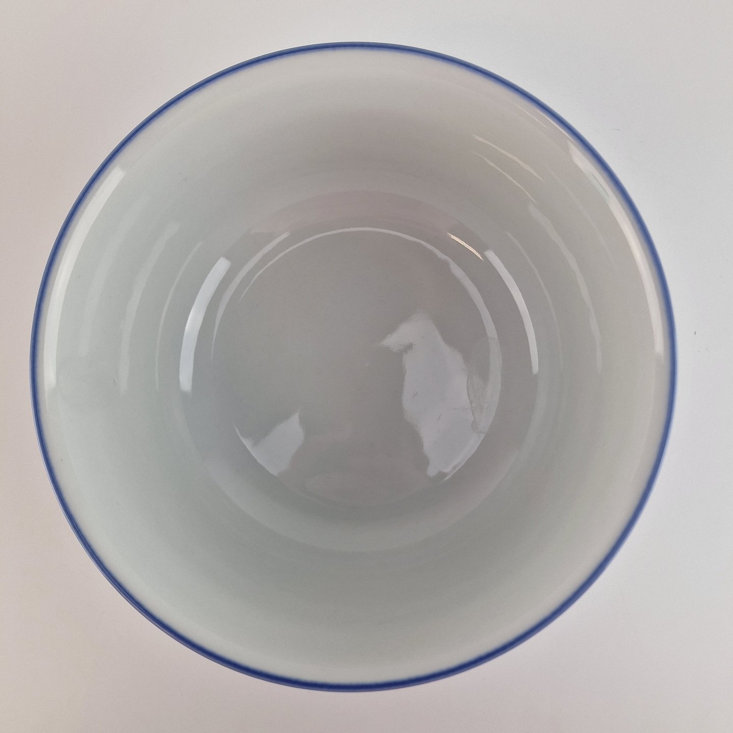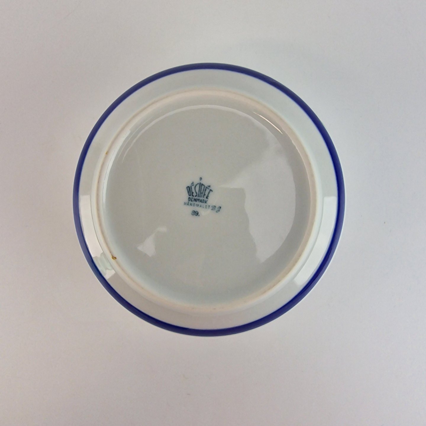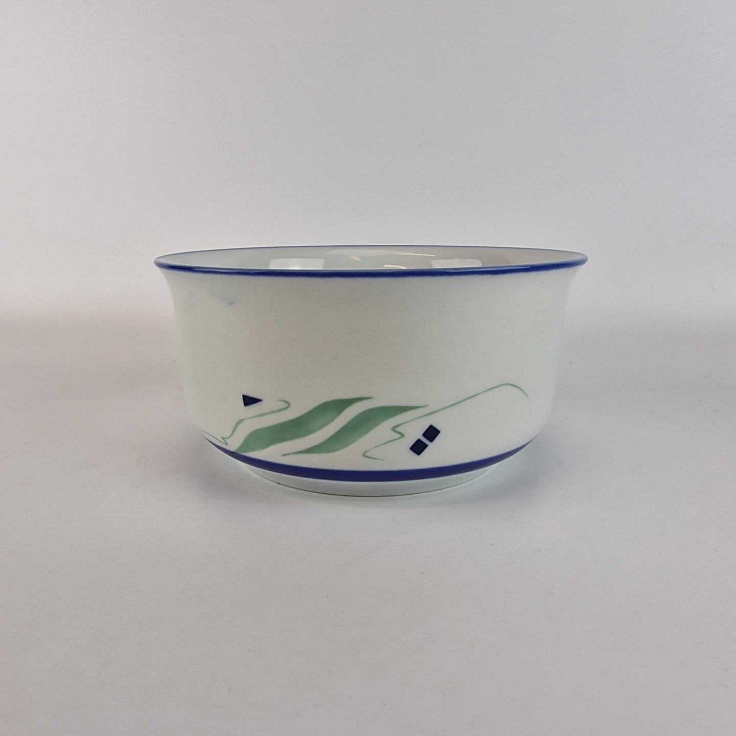 Springtime er af porcelæn, som er glaseret hvidt, malet med blå striber og abstrakt mønster i en lys grøn og blå farve.