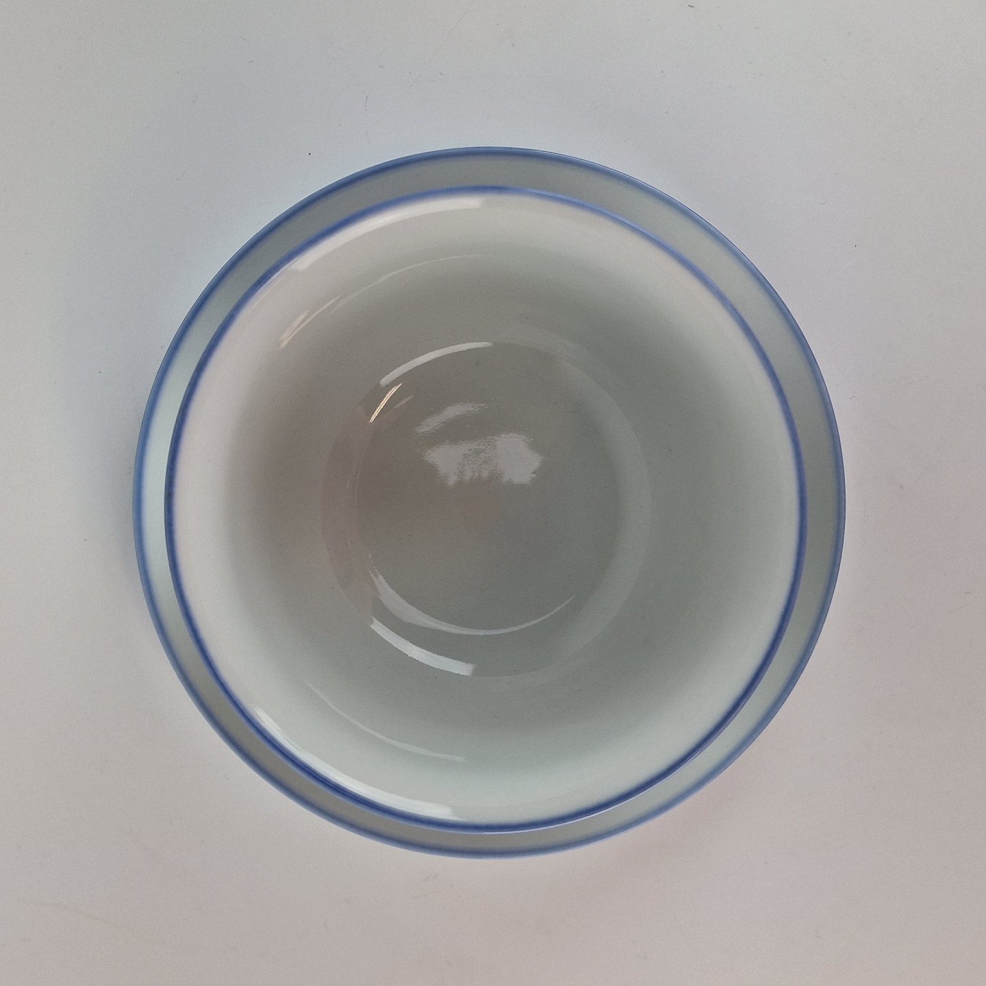 Springtime er af porcelæn, som er glaseret hvidt, malet med blå striber og abstrakt mønster i en lys grøn og blå farve.